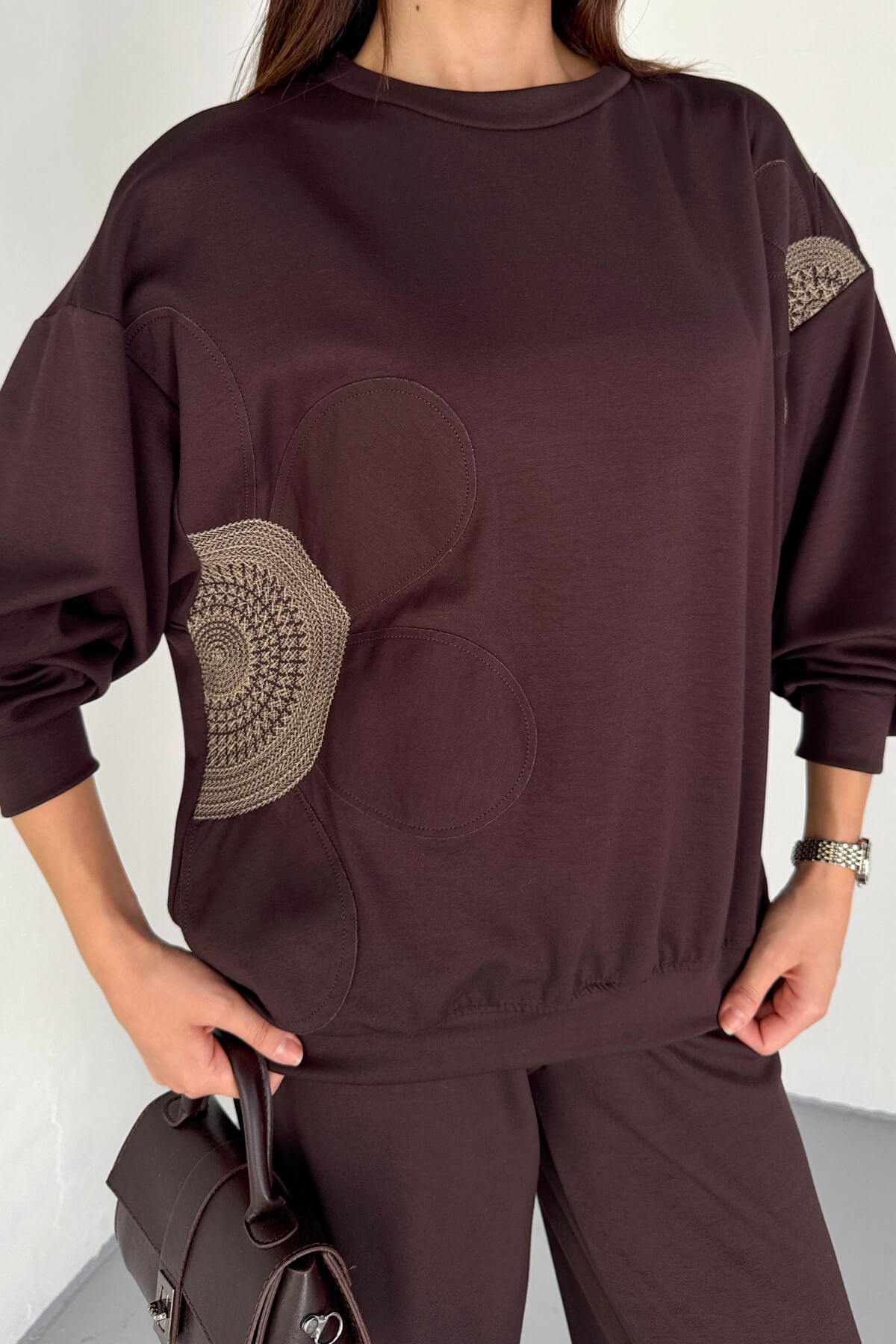 Çiçek nakış detayı ile modern ve feminen bir stil.