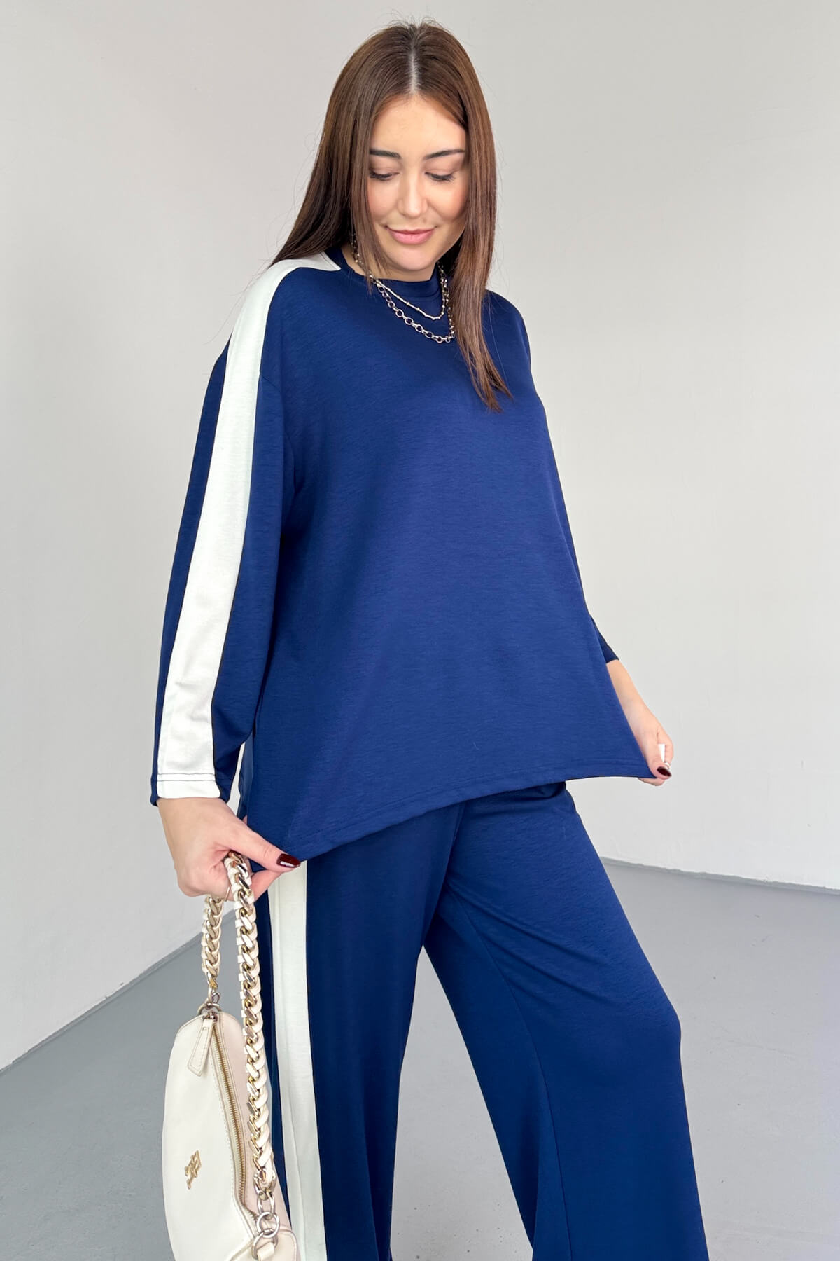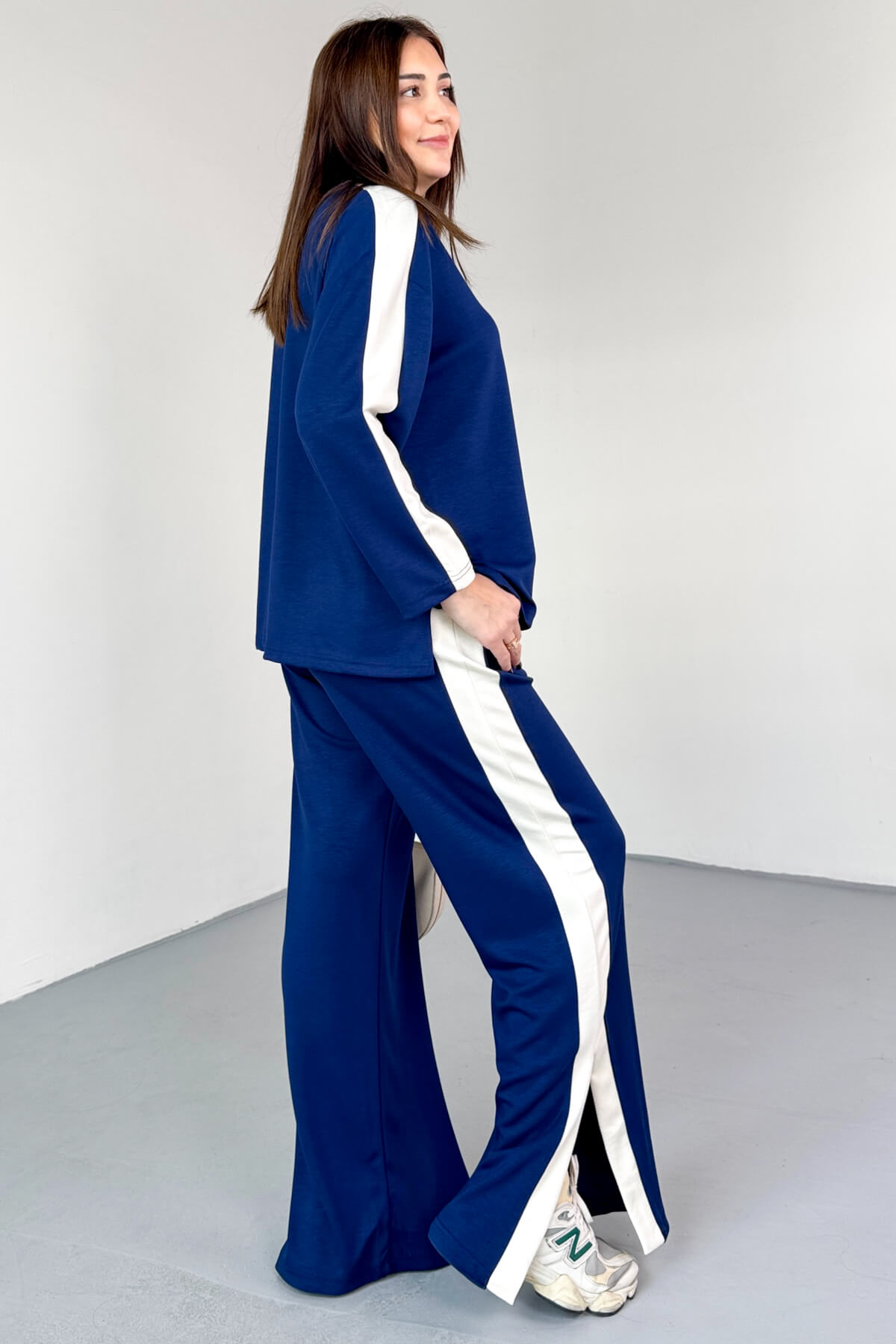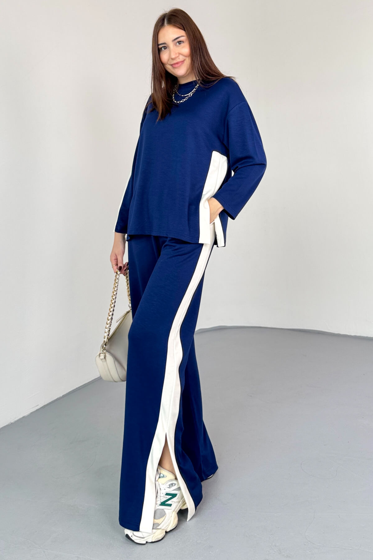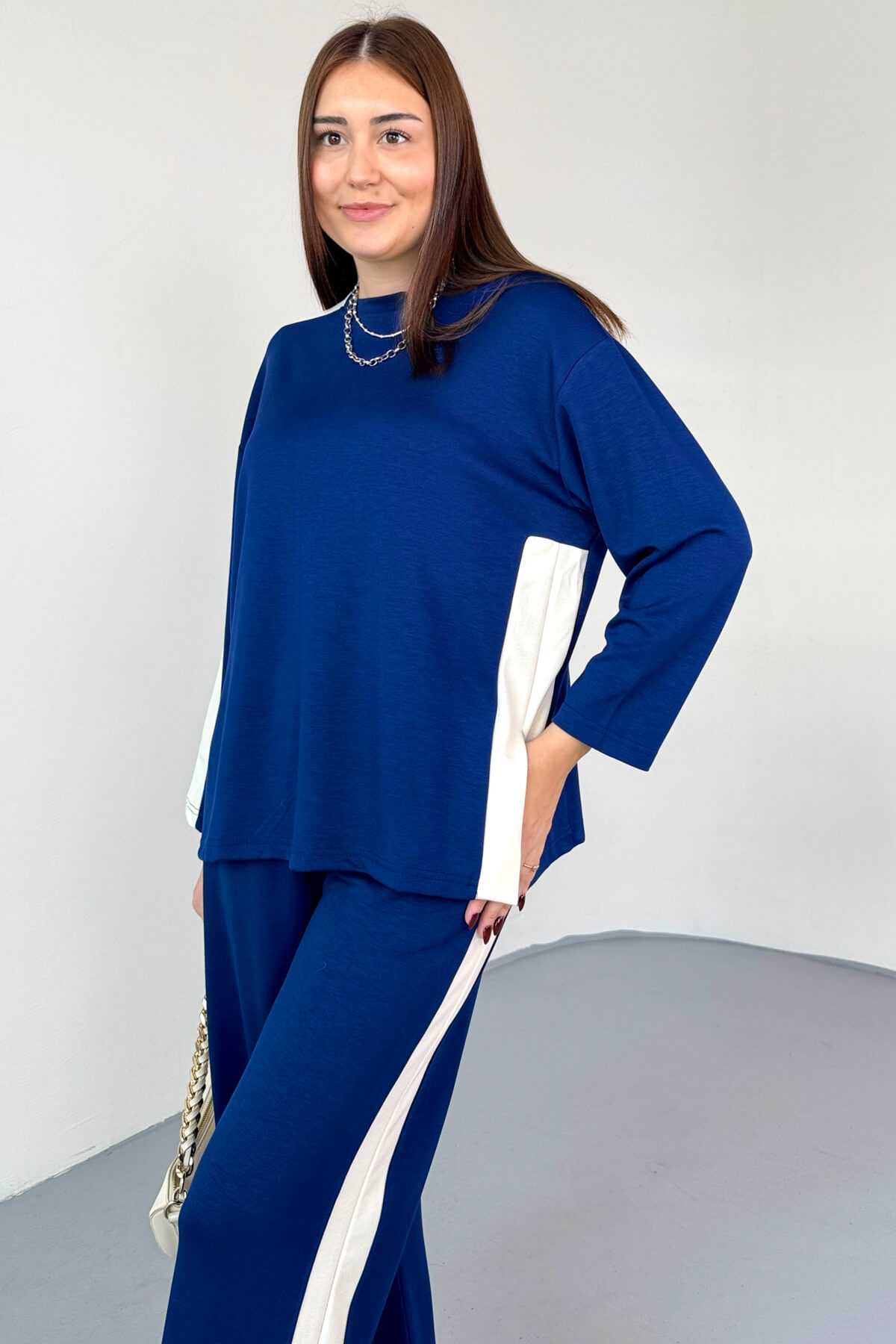 Omuzdan aşağı uzanan yan parça detayları ile spor-şık tarz