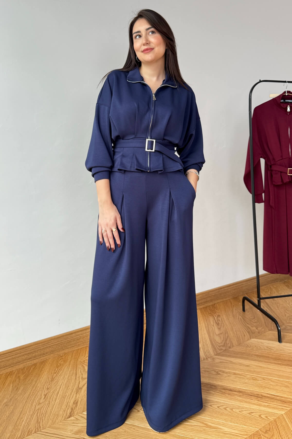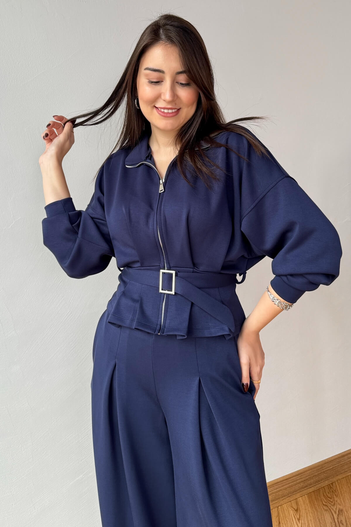 TKM-13351 Lacivert Korse Detaylı Fermuarlı Modal Takım