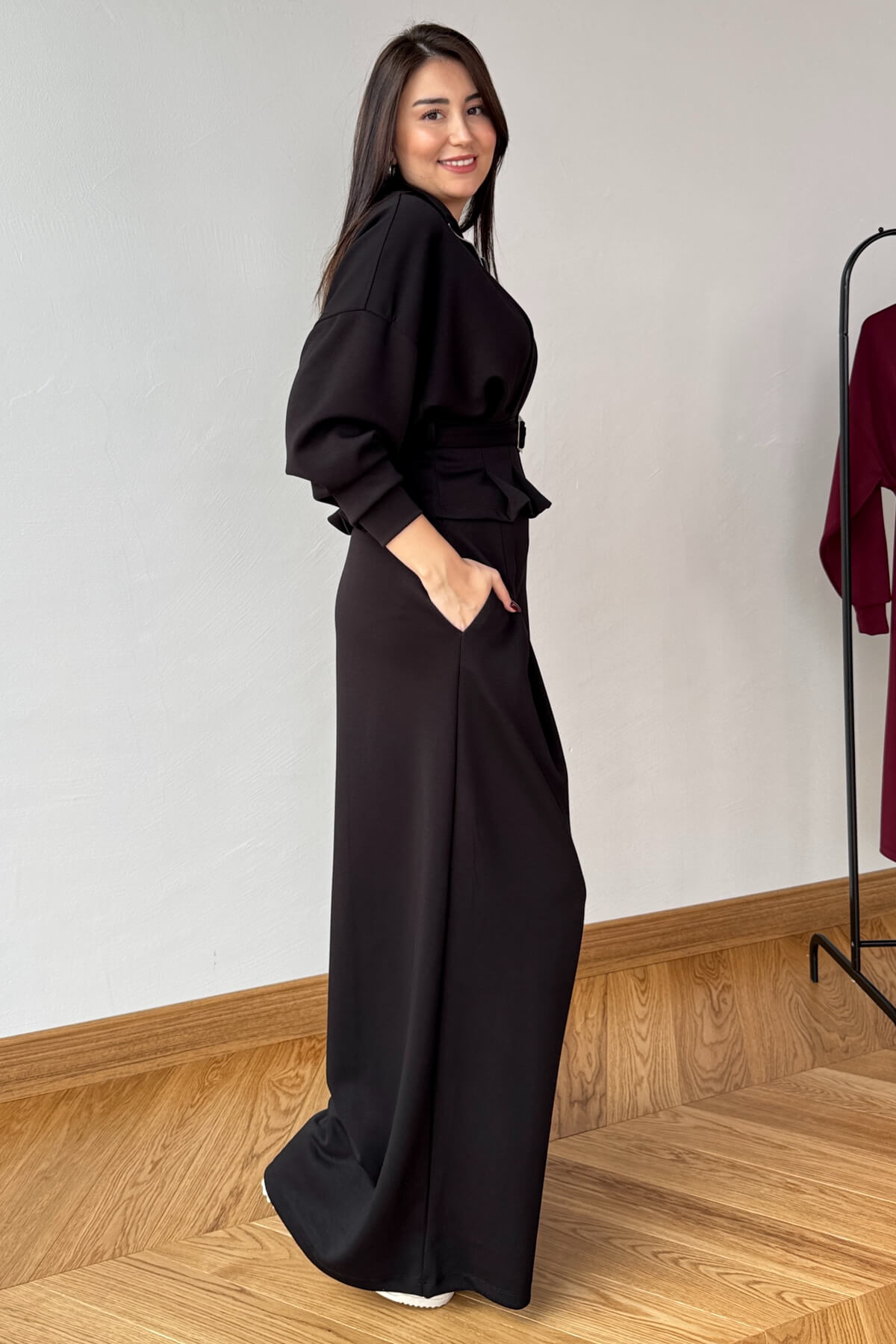 Bel korseli kemerli tasarım ile şıklığı ve rahatlığı bir arada sunar