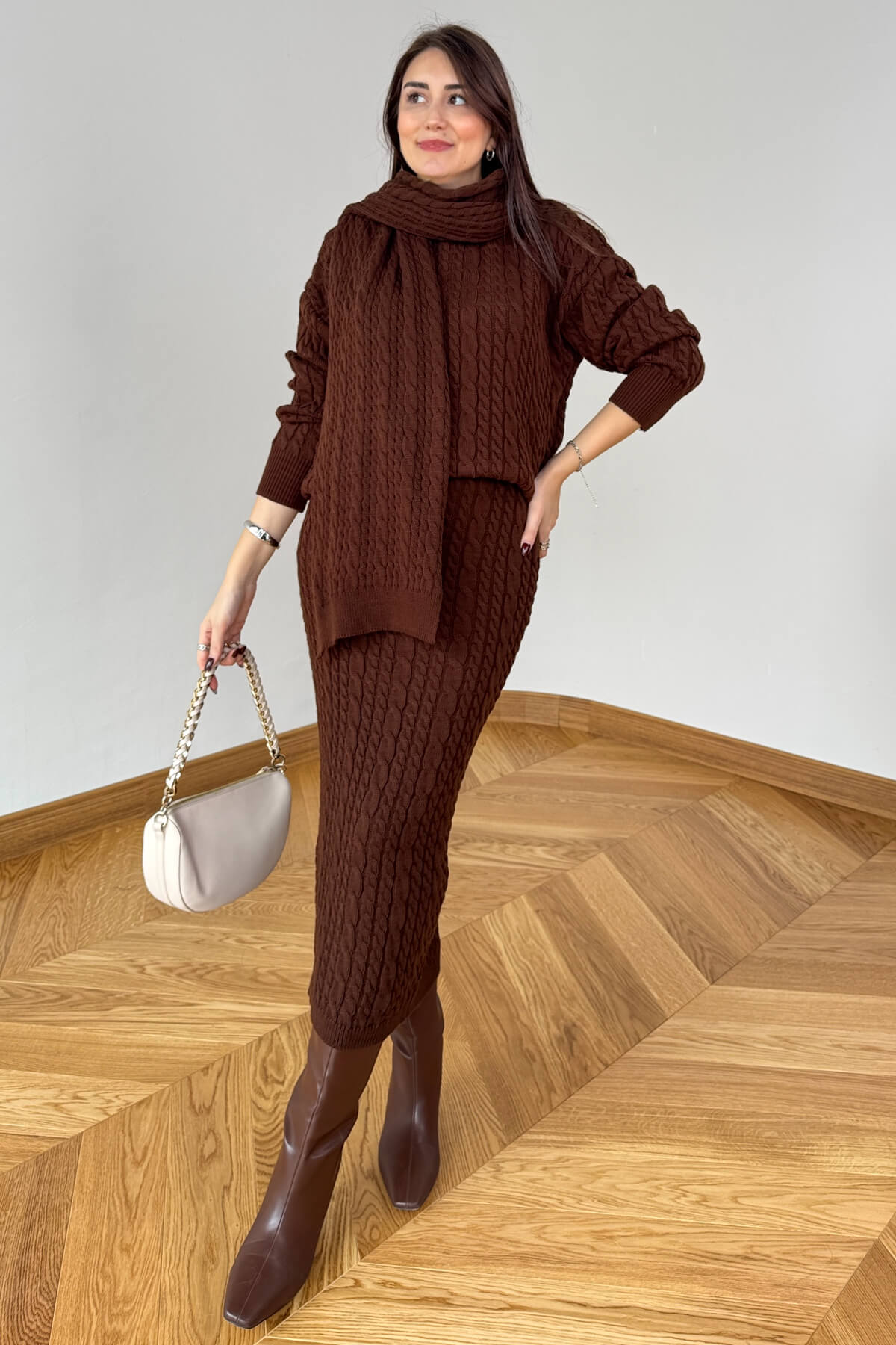 Takıma dahil olan triko şal (200 cm x 30 cm) ile soğuk havalarda ekstra sıcaklık ve stil tamamlayıcılığı sunar.