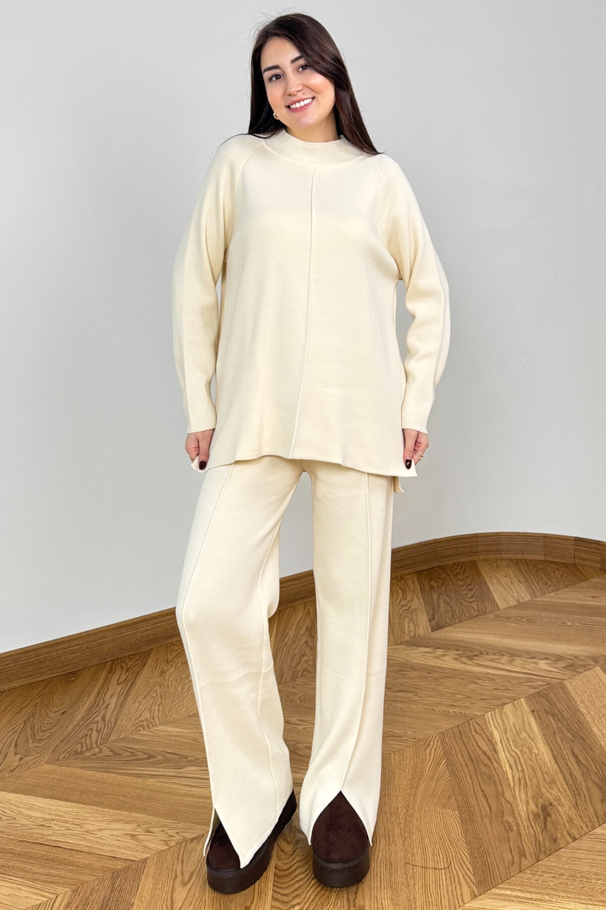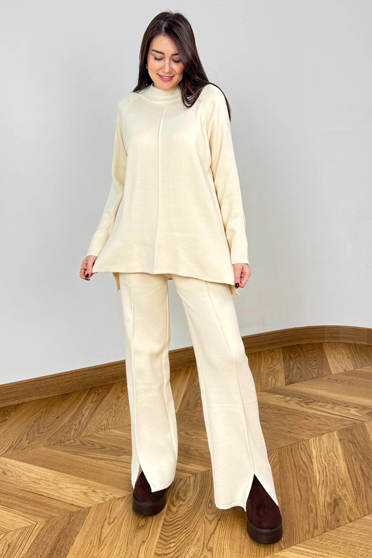 TKM-13359 Bej Yarım Balıkçı Çelik Örme Triko Takım