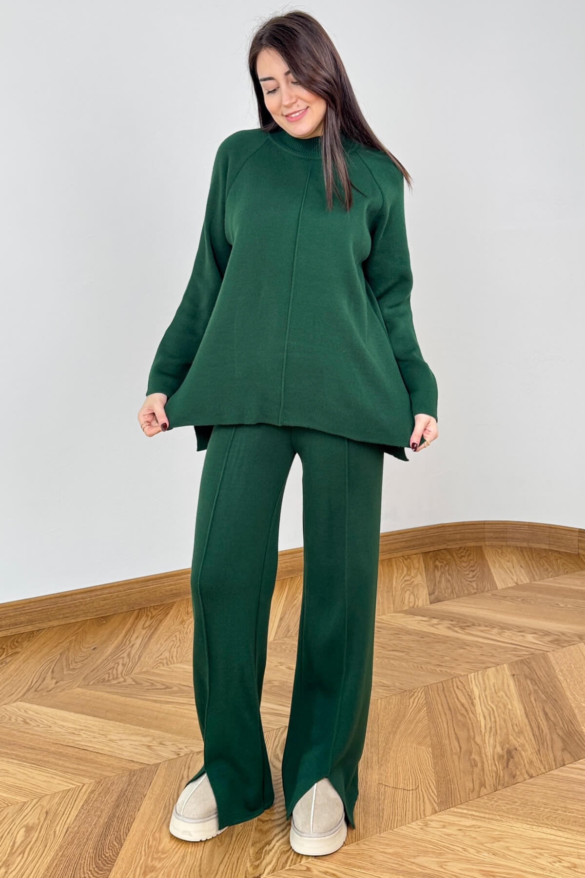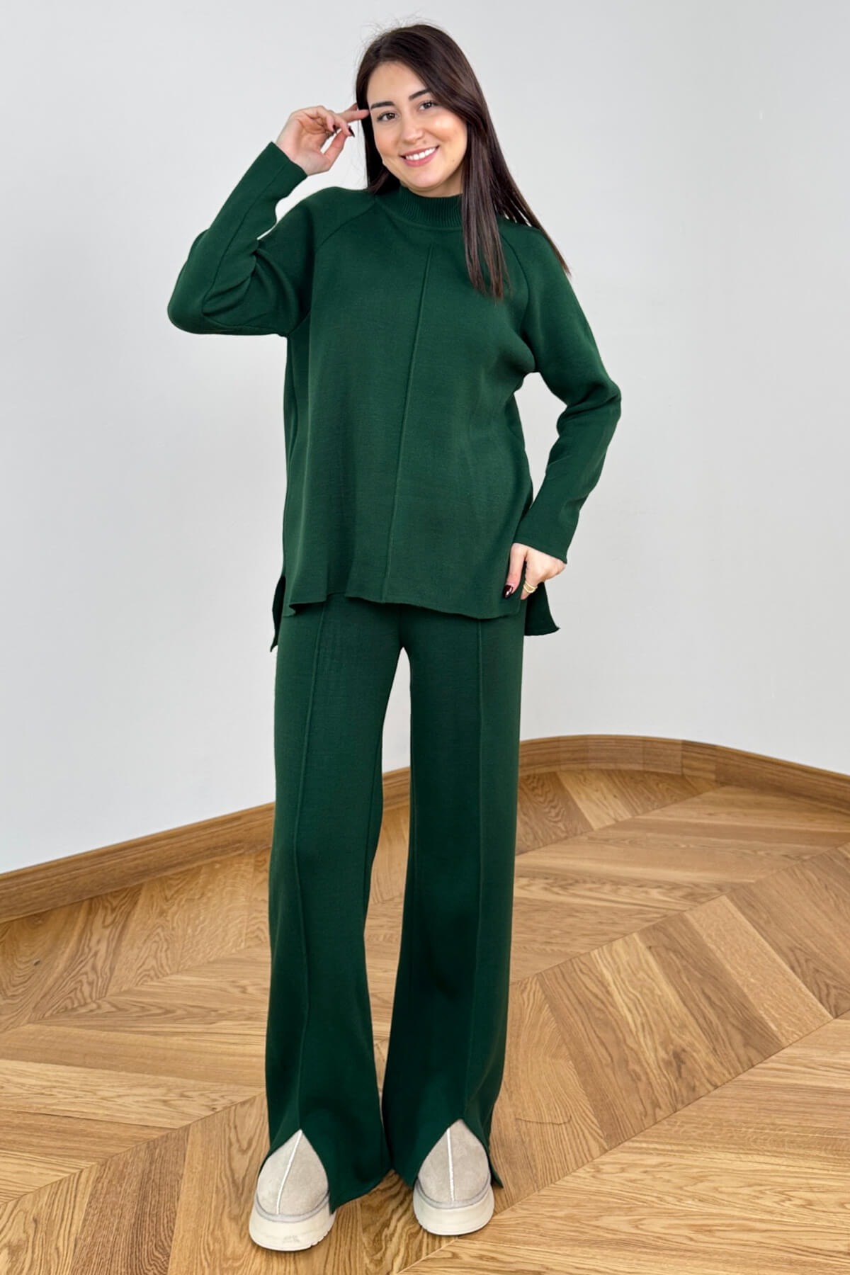 TKM-13359 Zümrüt Yeşili Yarım Balıkçı Çelik Örme Triko Takım