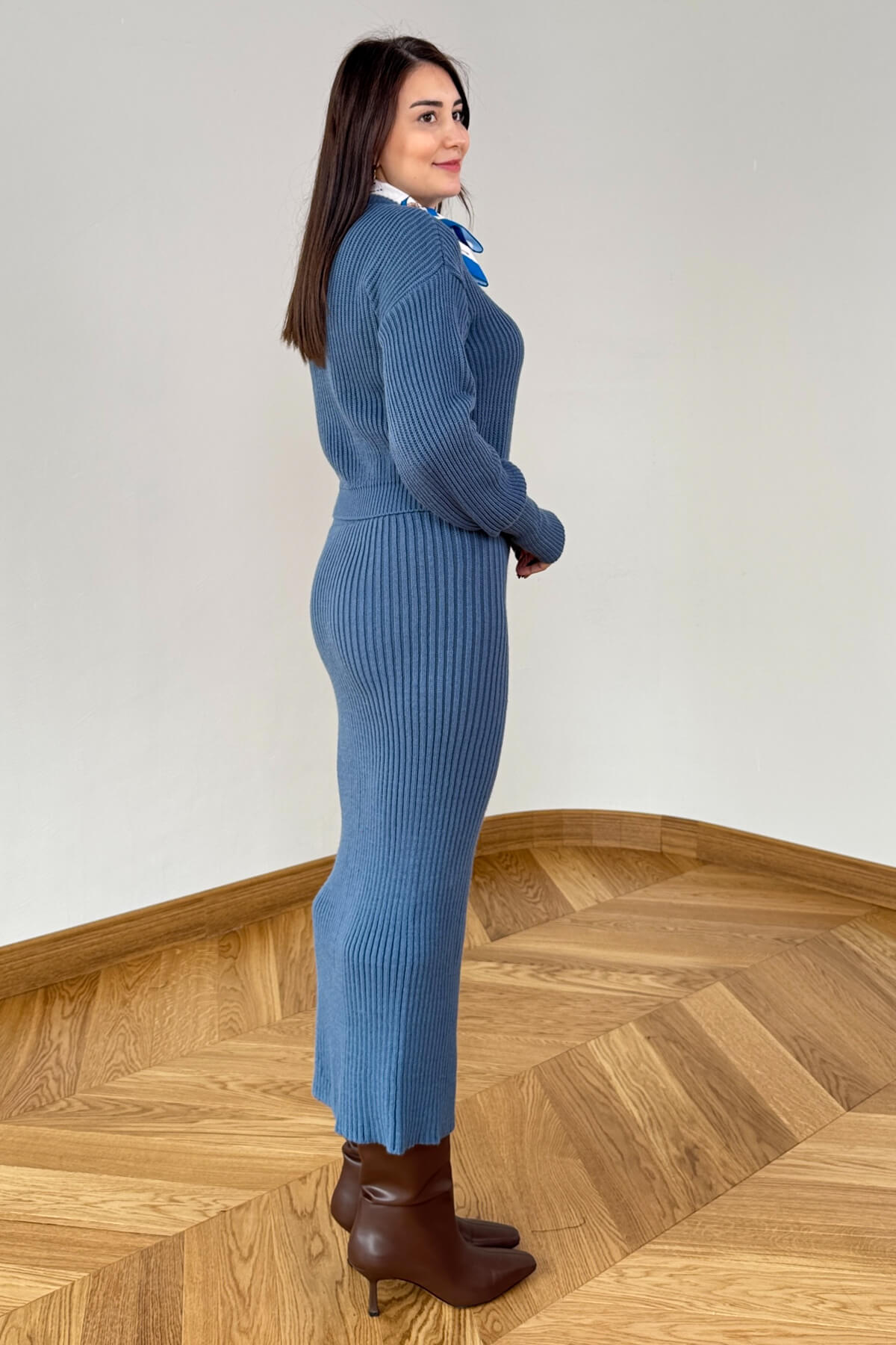 Esnek bel yapılı triko etek, gün boyu rahat hareket imkânı verir.
