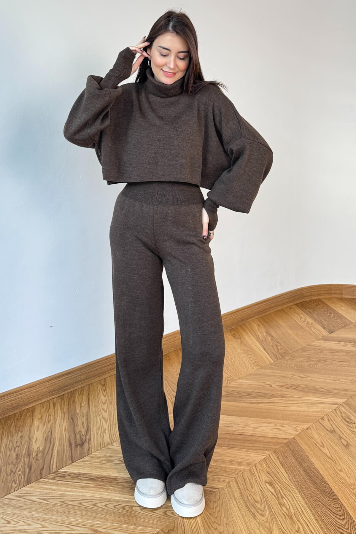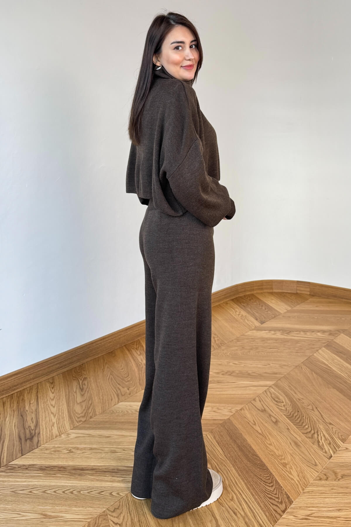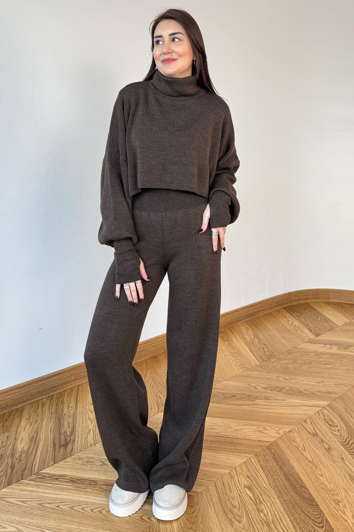 TKM-13361 Acı Kahve Çelik Örme Parmak Geçirmeli Balıkçı Yaka İkili Takım