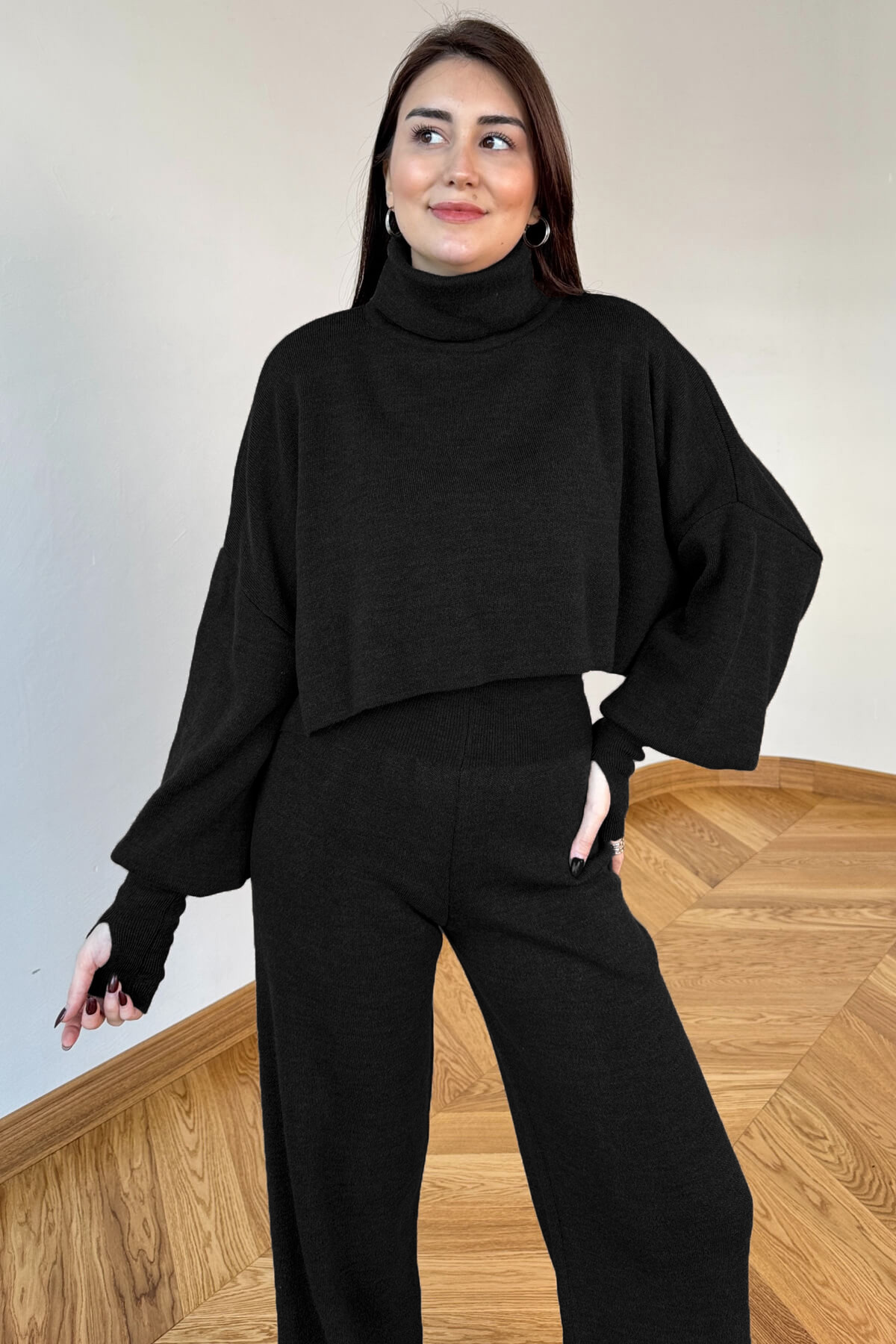 Parmak geçirmeli yarasa kol modern ve sportif bir duruş sunar