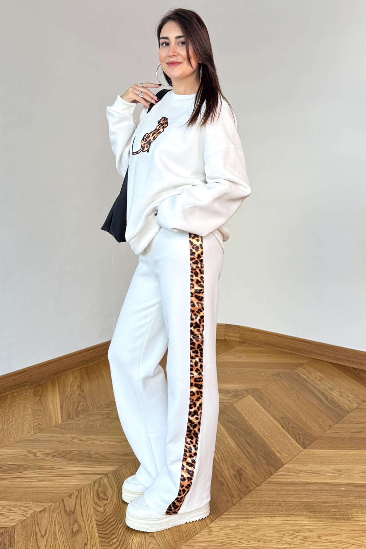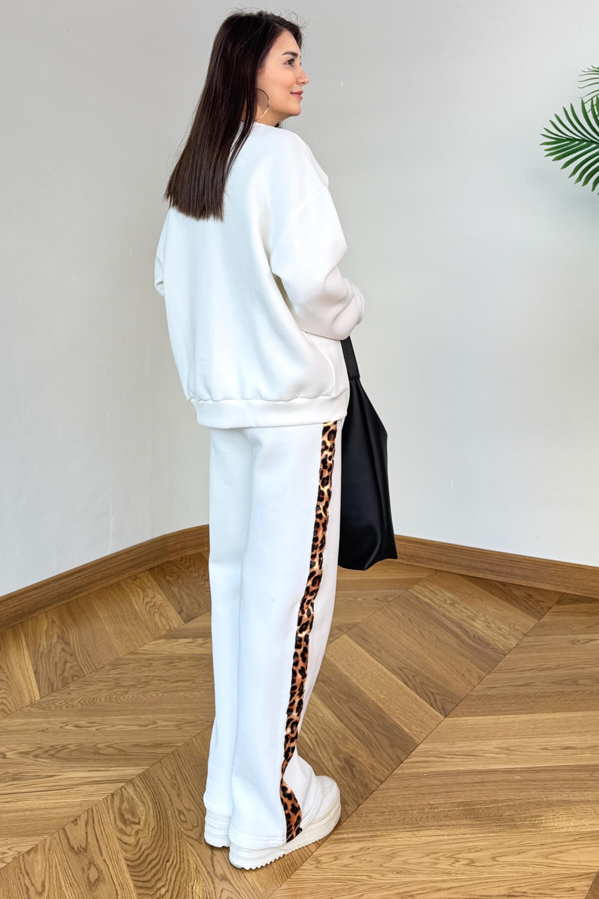Eşofman altı leopar şerit tasarımı ile bütünleşik stil