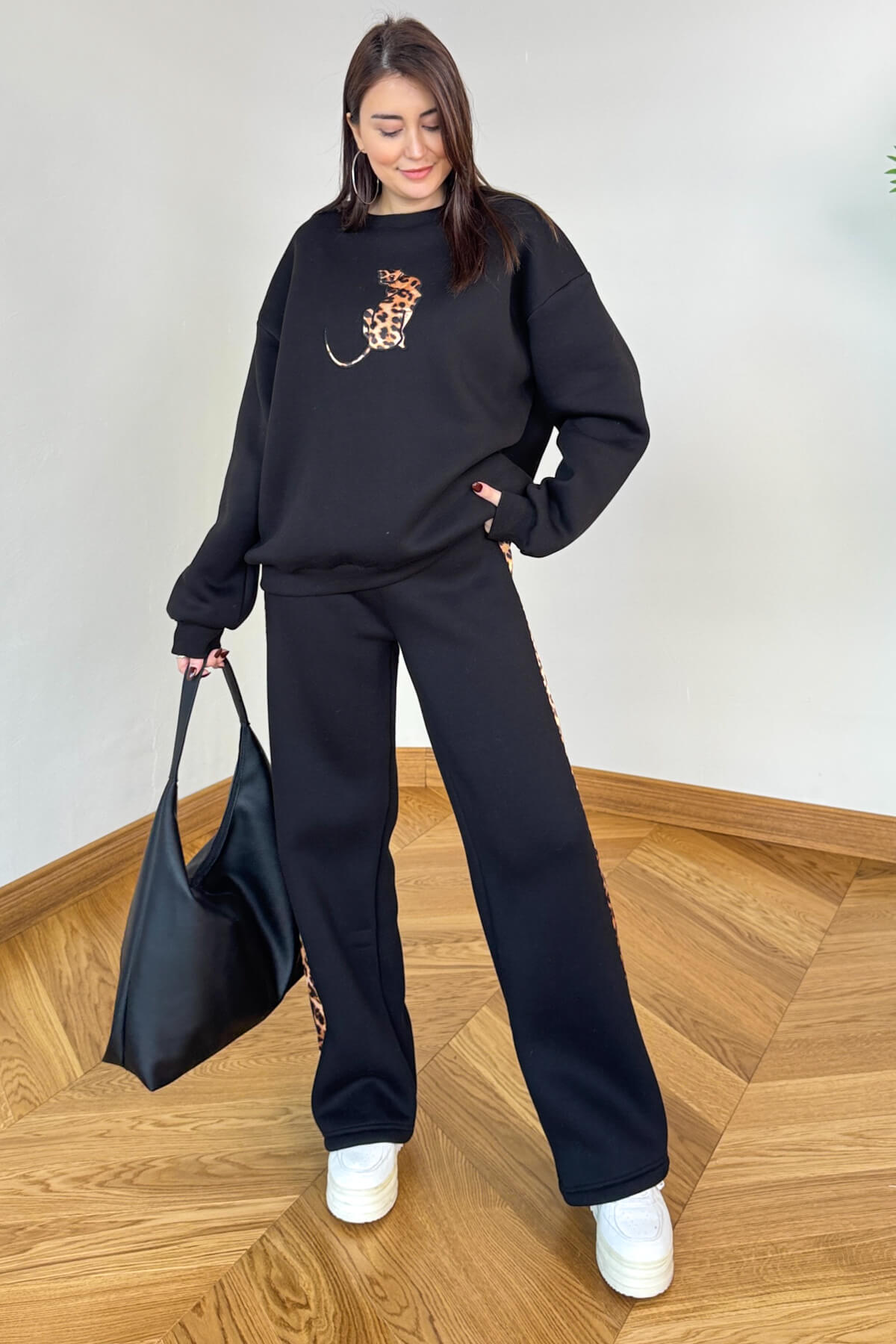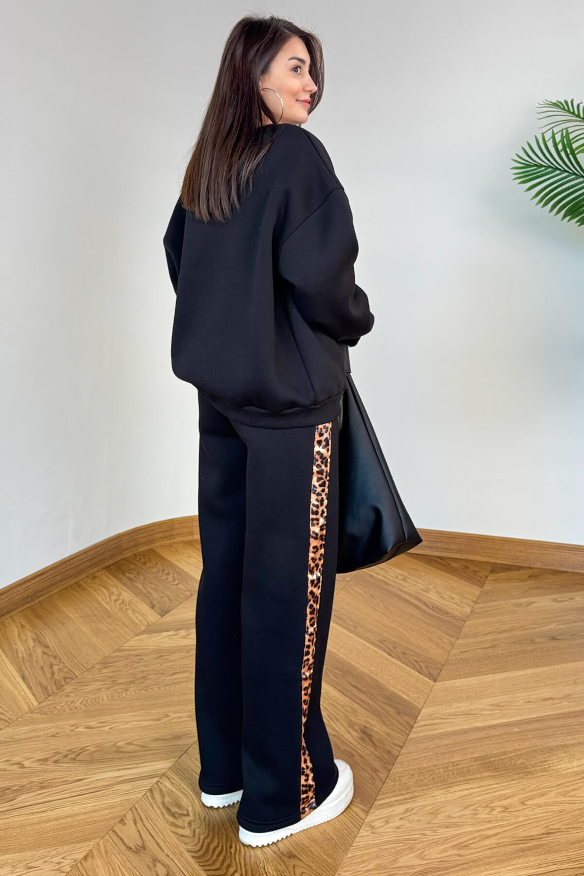 • Eşofman altı leopar şerit tasarımı ile bütünleşik stil