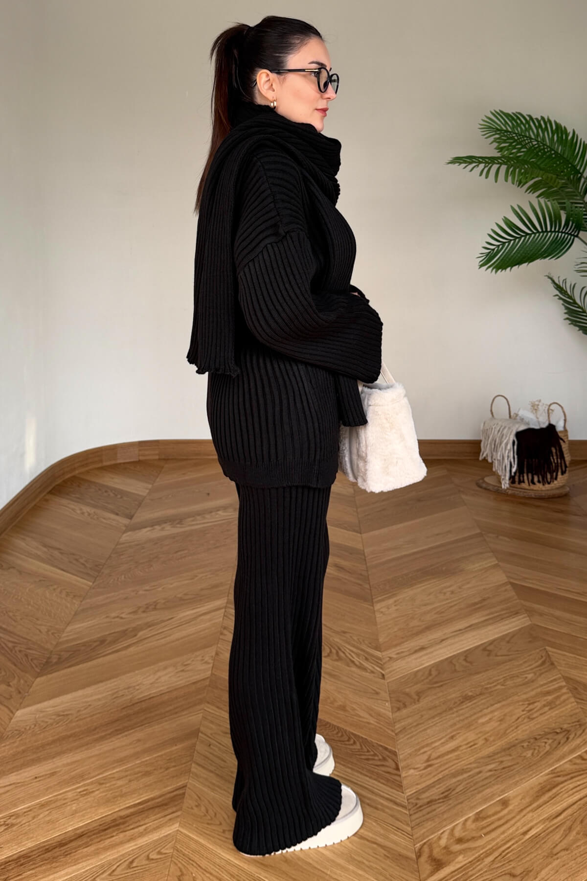 Ekstra triko şal ile kombin tamamlayıcı üçlü set.