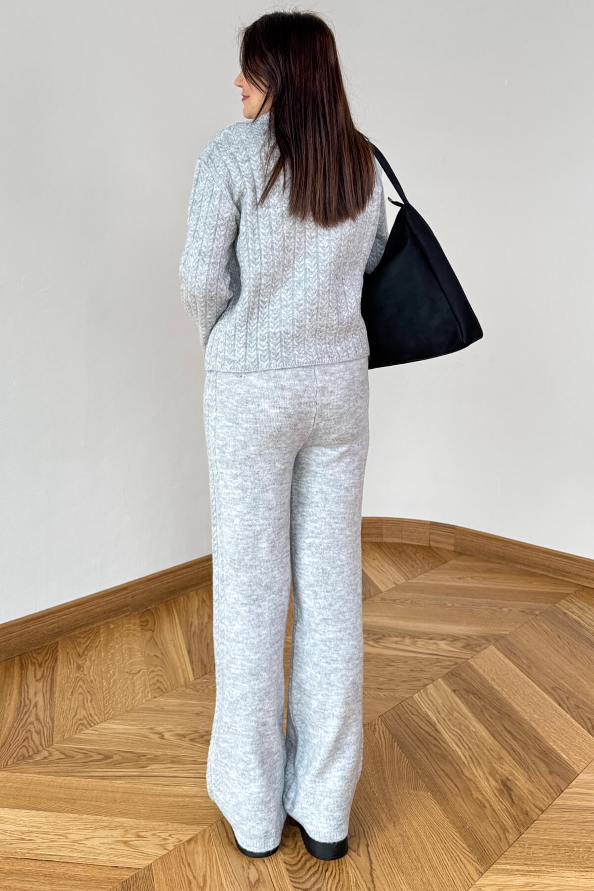 TKM-2528 Gri Örgü Desenli Tiftikli Yumoş Triko Takım