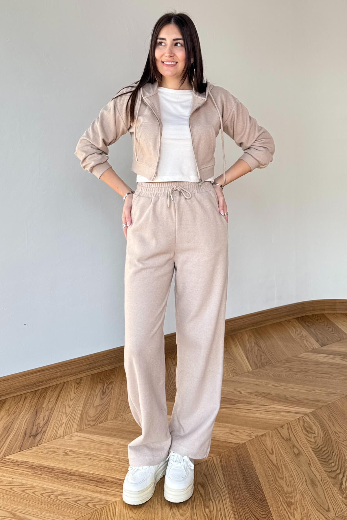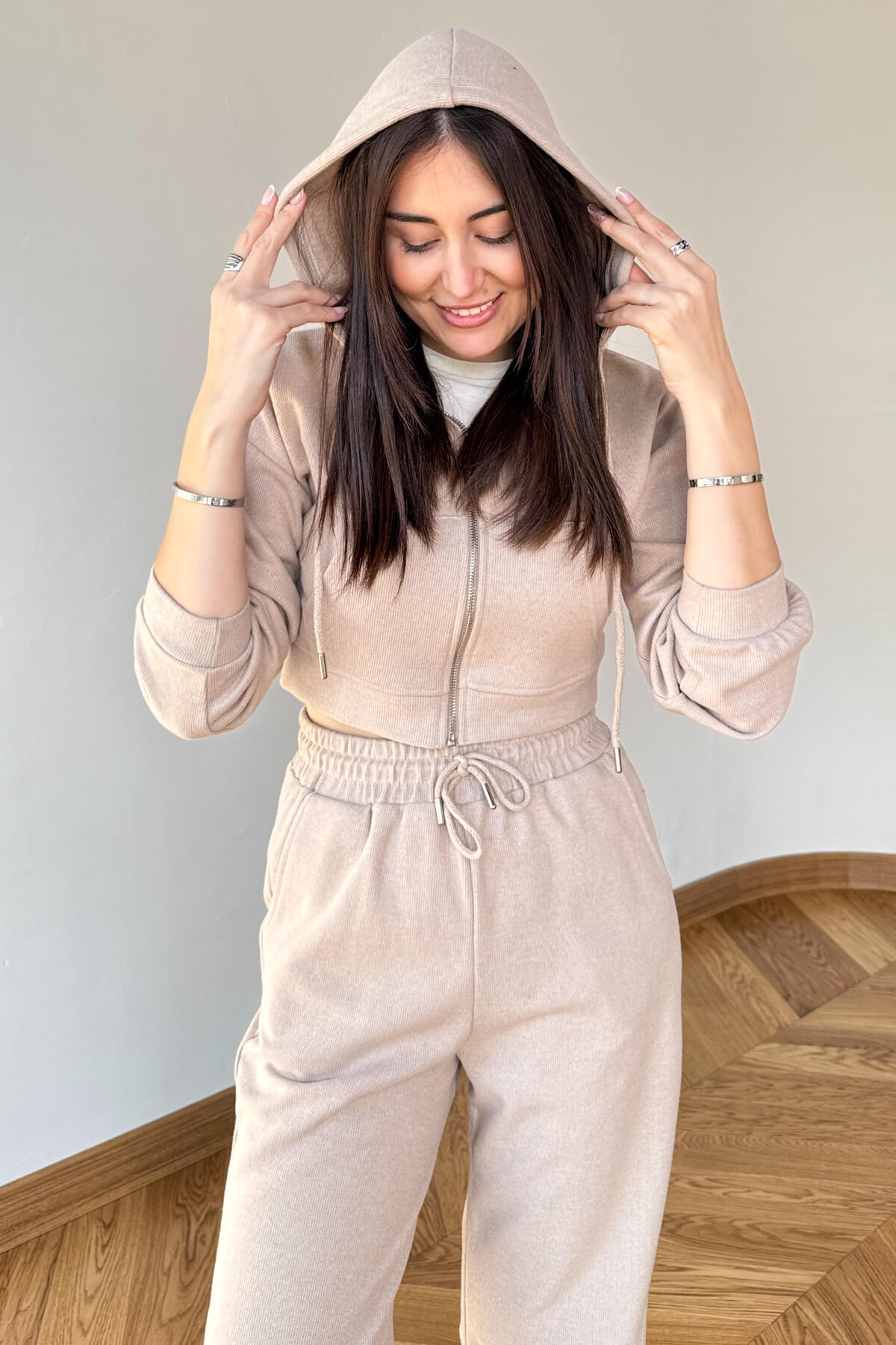 Kapüşonlu, fermuarlı crop üst ile dinamik ve modern görünüm