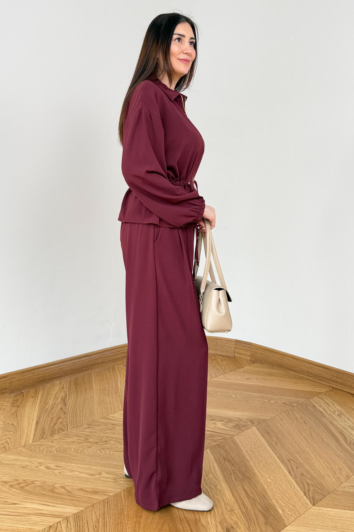 Poliviskon kumaşın sunduğu konforlu dokuyu modern ve sportif bir tasarımla buluşturan bu ikili takım, günlük stilinize dinamik bir soluk getiriyor. Üst parçada yer alan tam boy fermuar ve ayarlanabilir bel büzgüsü, silüetinizi dilediğiniz gibi formize etmenize olanak tanırken; 102 cm boyundaki rahat kesim pantolon, fonksiyonel cep detaylarıyla kullanım kolaylığı sunuyor. Bileklerdeki lastik detayı ve 58 cm boyundaki şık üst tasarımıyla hem ev konforunda hem de dışarıda eforsuz bir şıklık vadediyor.