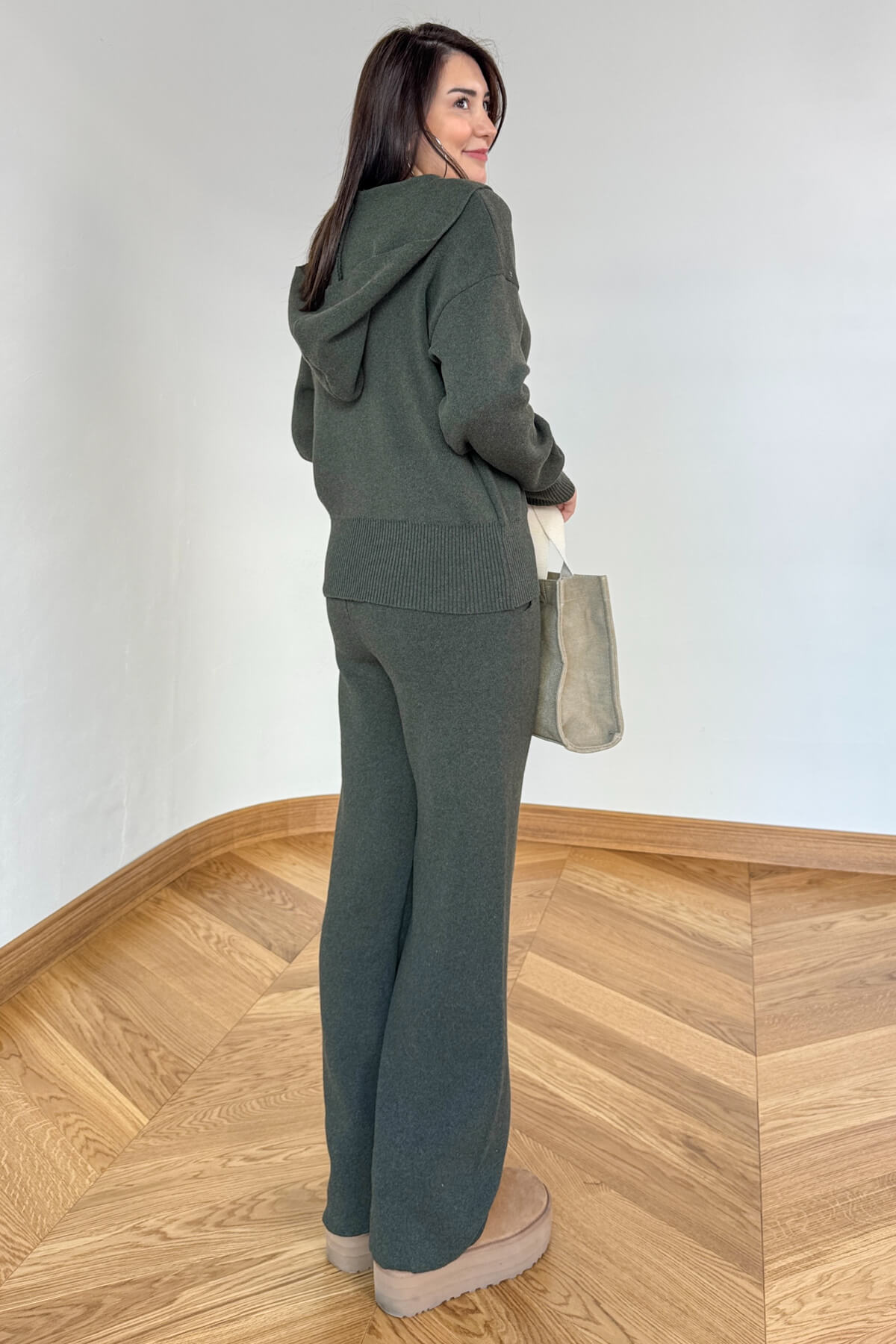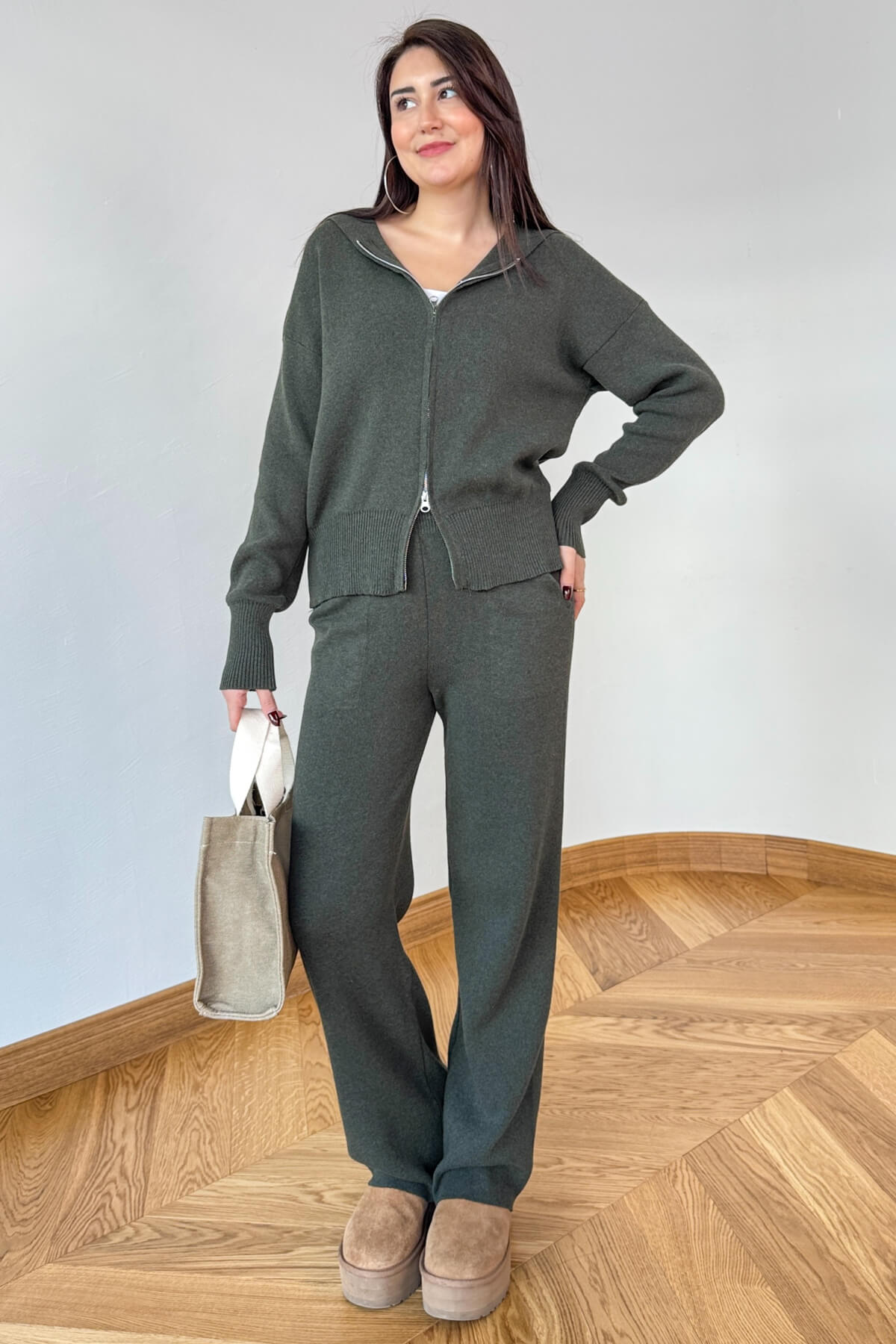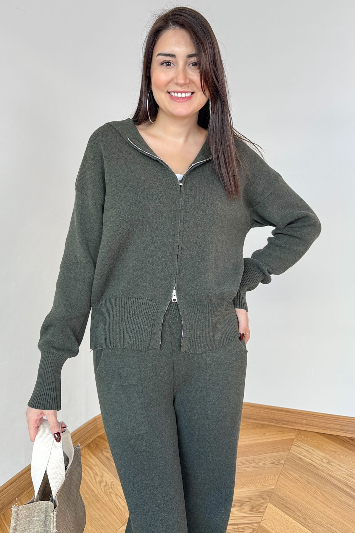 TKM-902 Haki Çelik Örgü Çift Fermuarlı Kapüşonlu İkili Takım