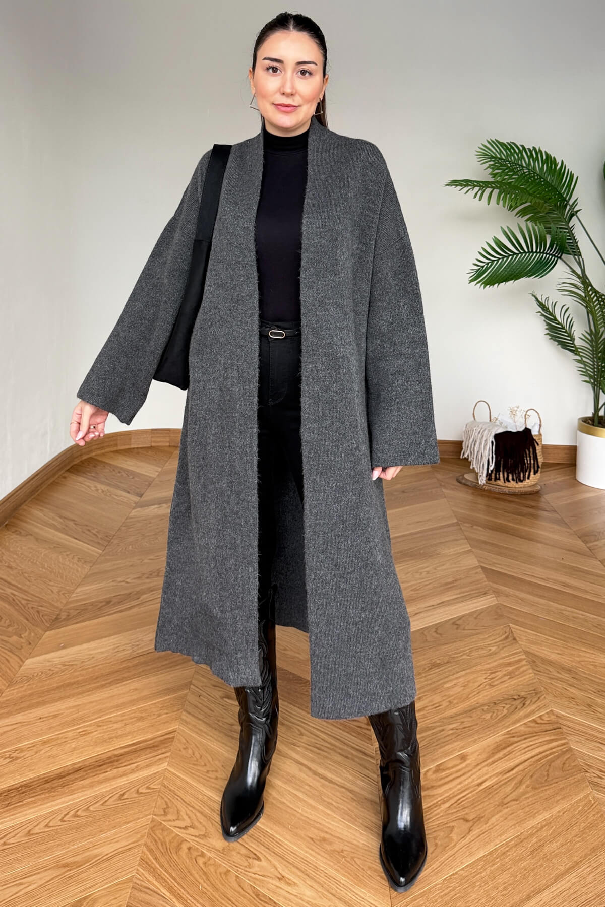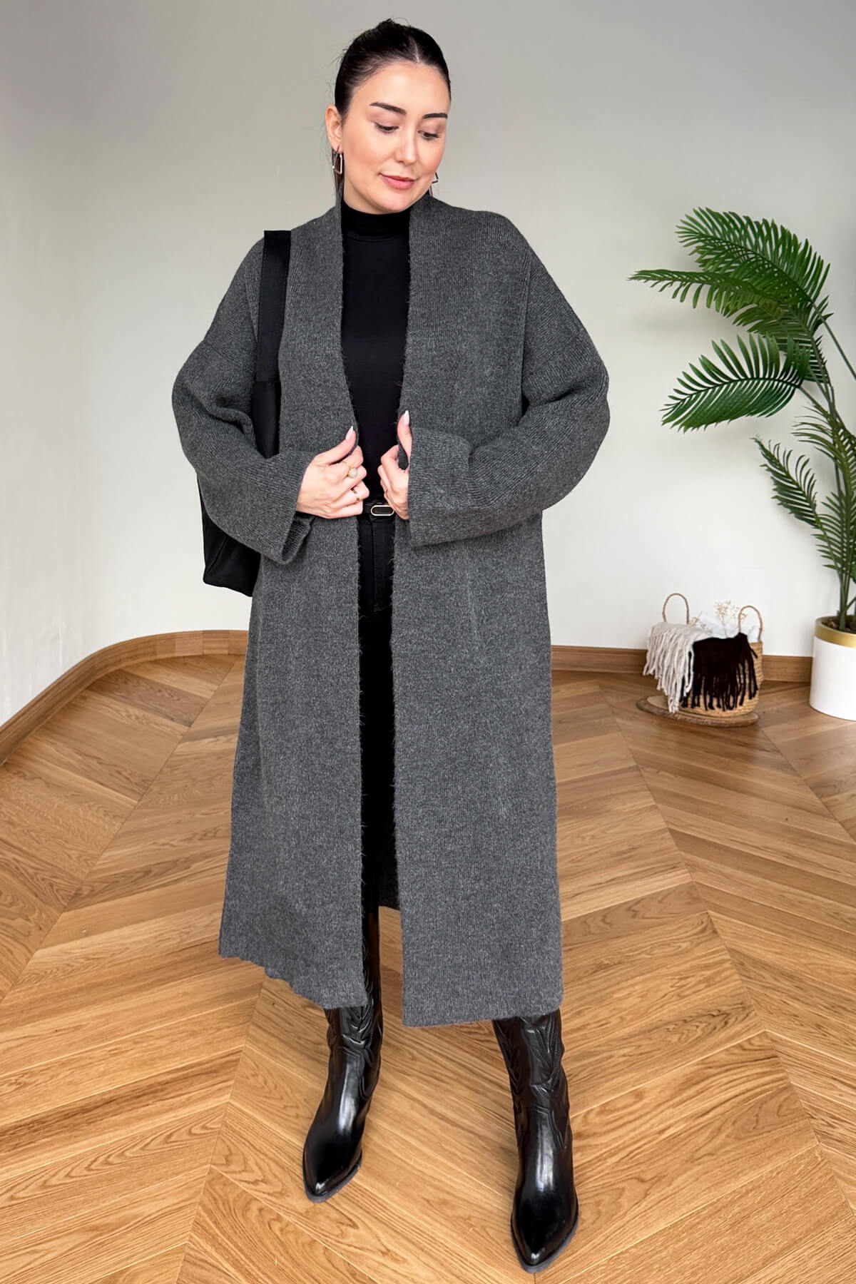 TRK-2000 Füme Kalın Dokulu Uzun Triko Hırka