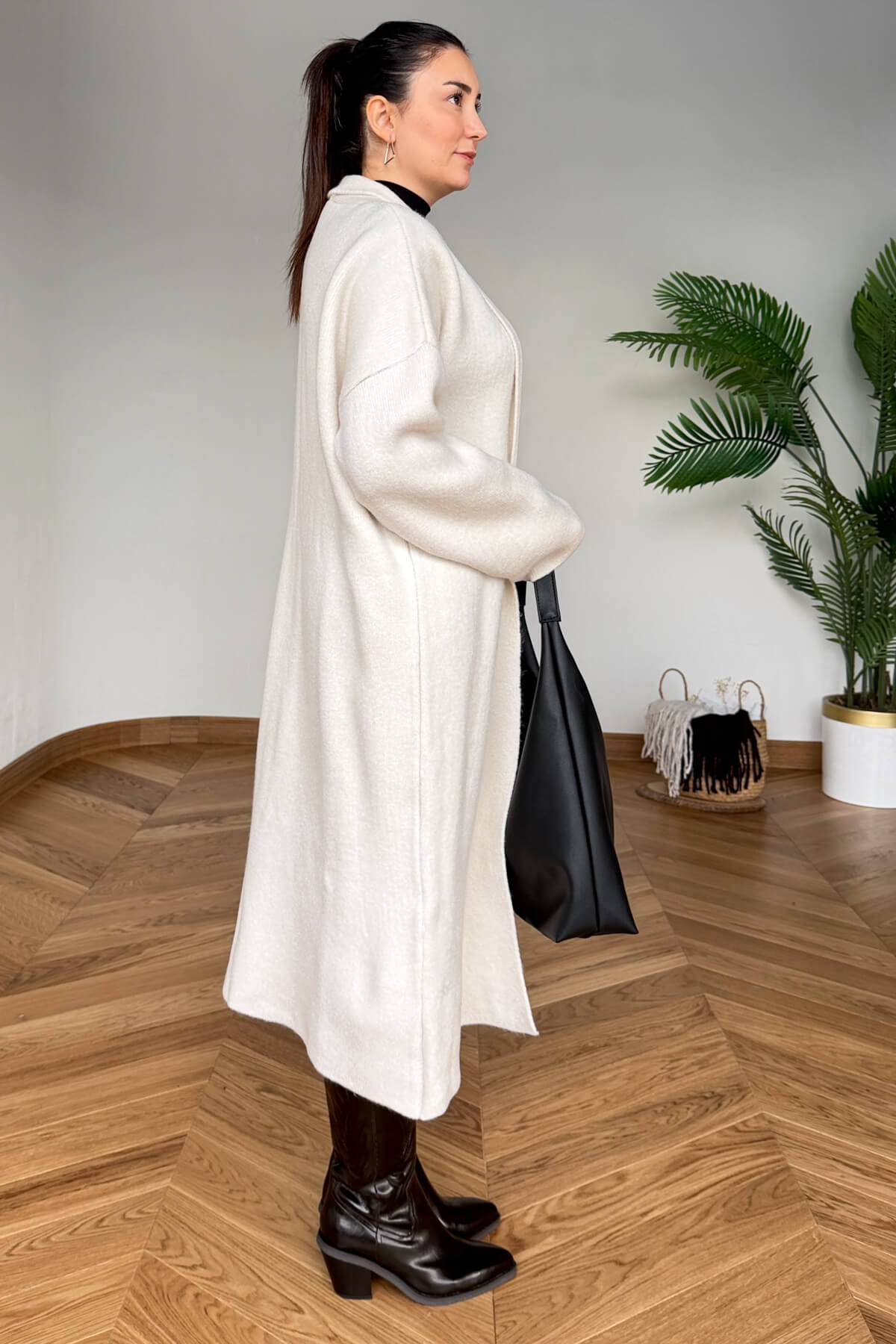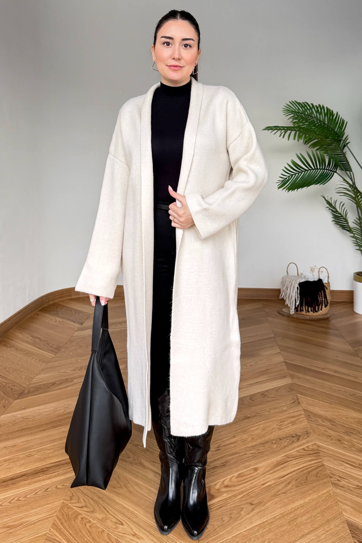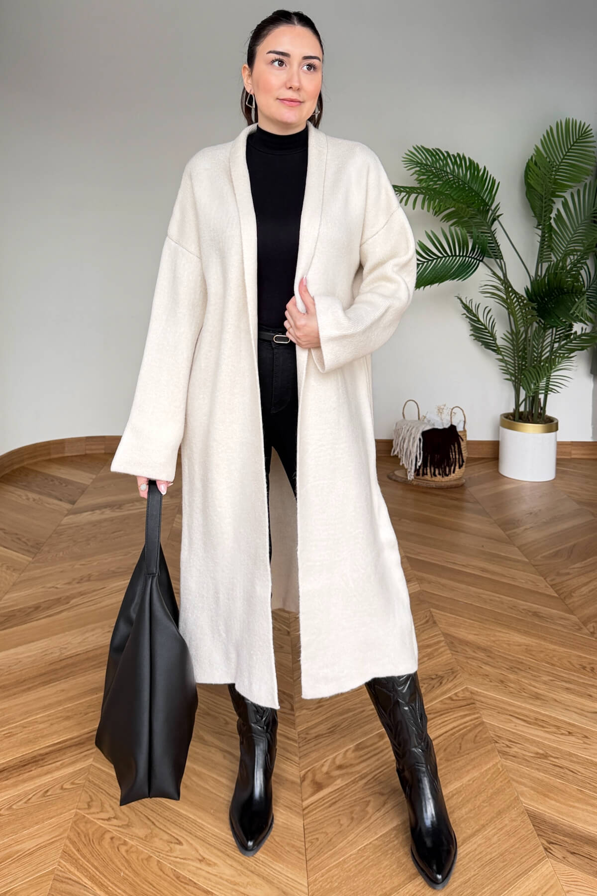 Rahat kesimi sayesinde kazak, elbise ve basic kombinlerle kolayca uyum sağlar.
