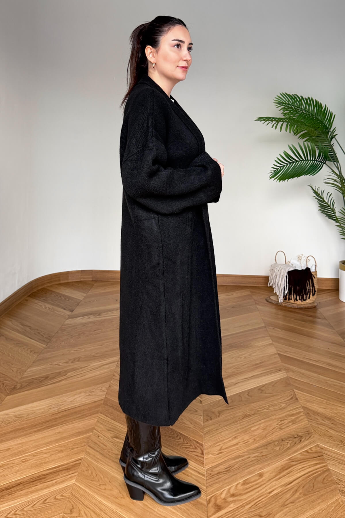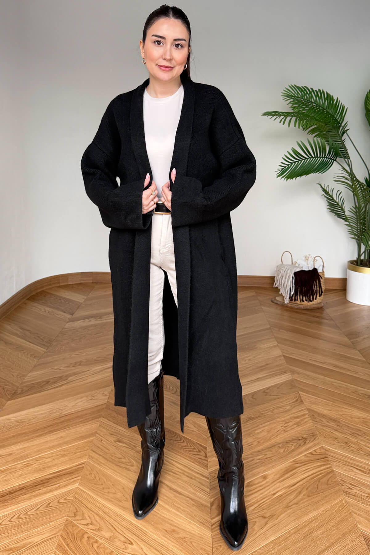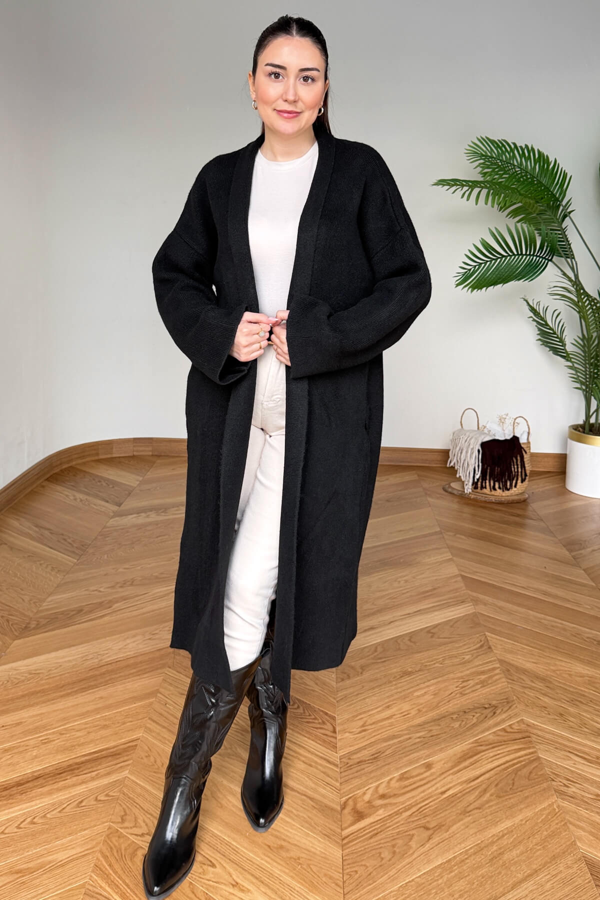 TRK-2000 Siyah Kalın Dokulu Uzun Triko Hırka