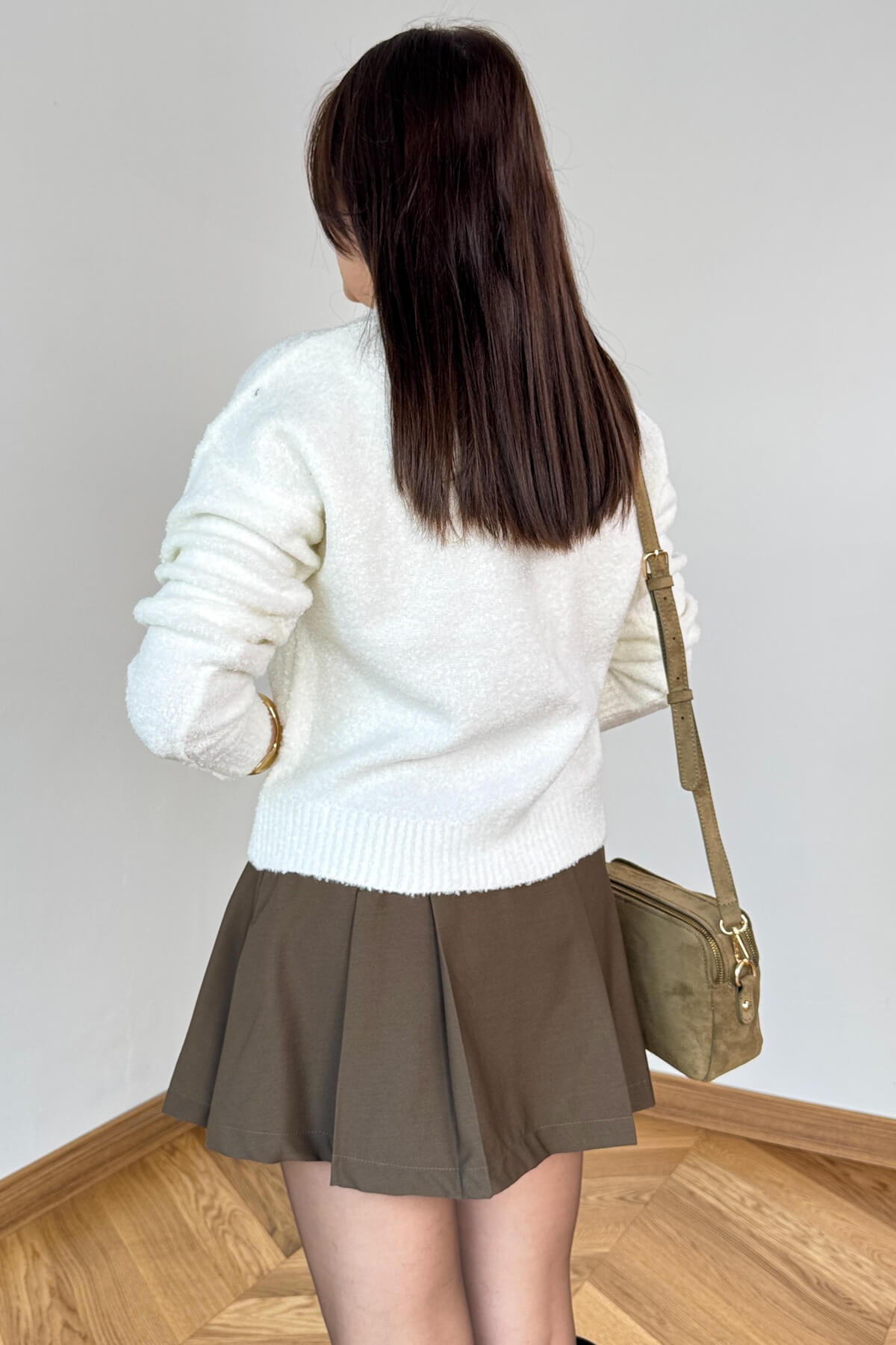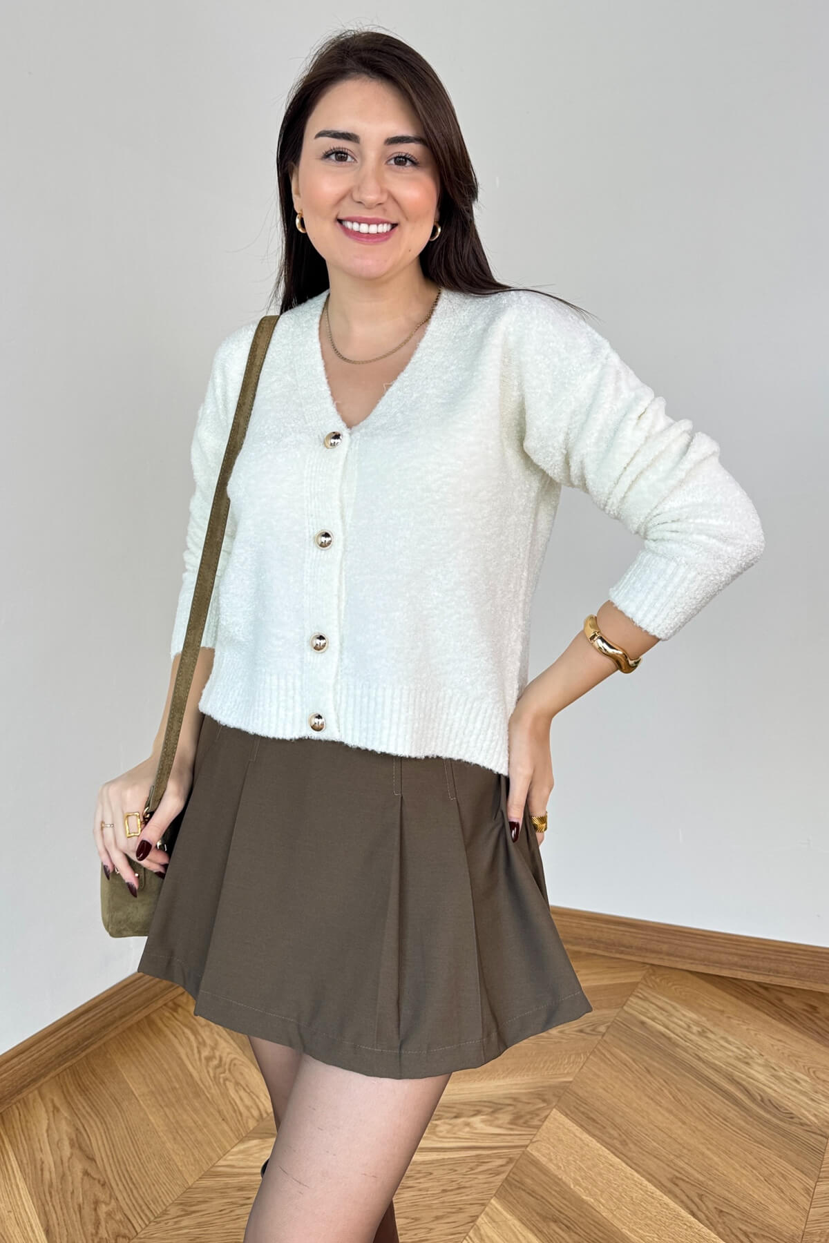 TRK-2084 Ekru Bürümcük Yumoş Buklet Hırka