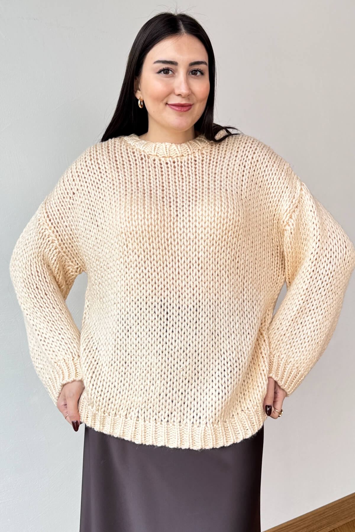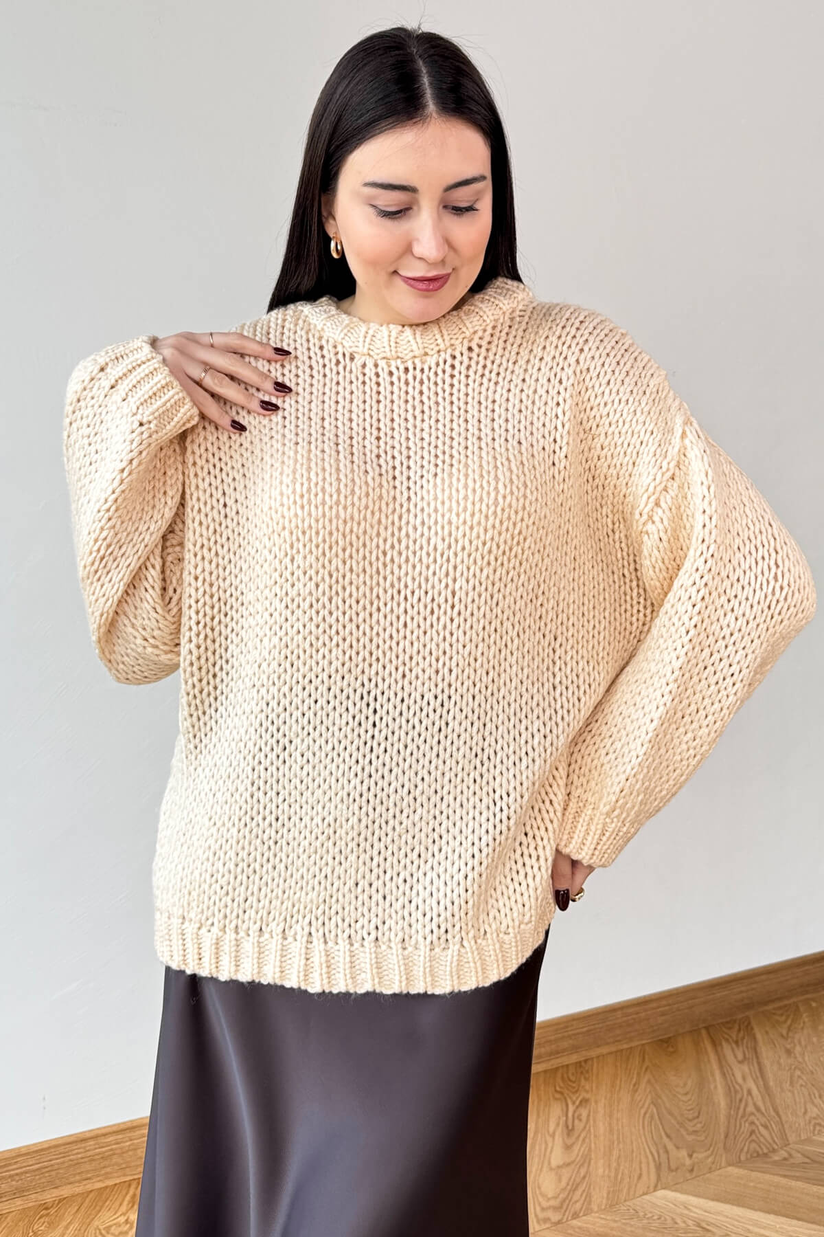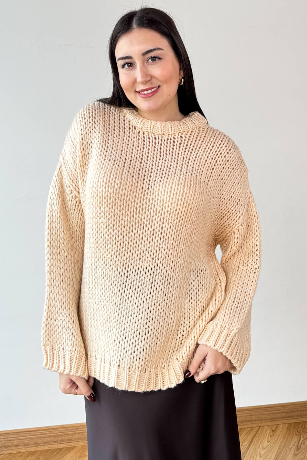 Kalın el örgü kumaş ile sıcak tutan ve hacimli duruş