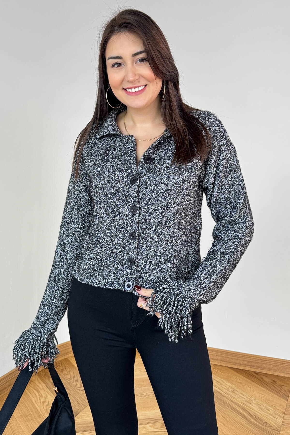 • Püskül detaylı kol uçları, modern ve dikkat çekici bir görünüm oluşturur.