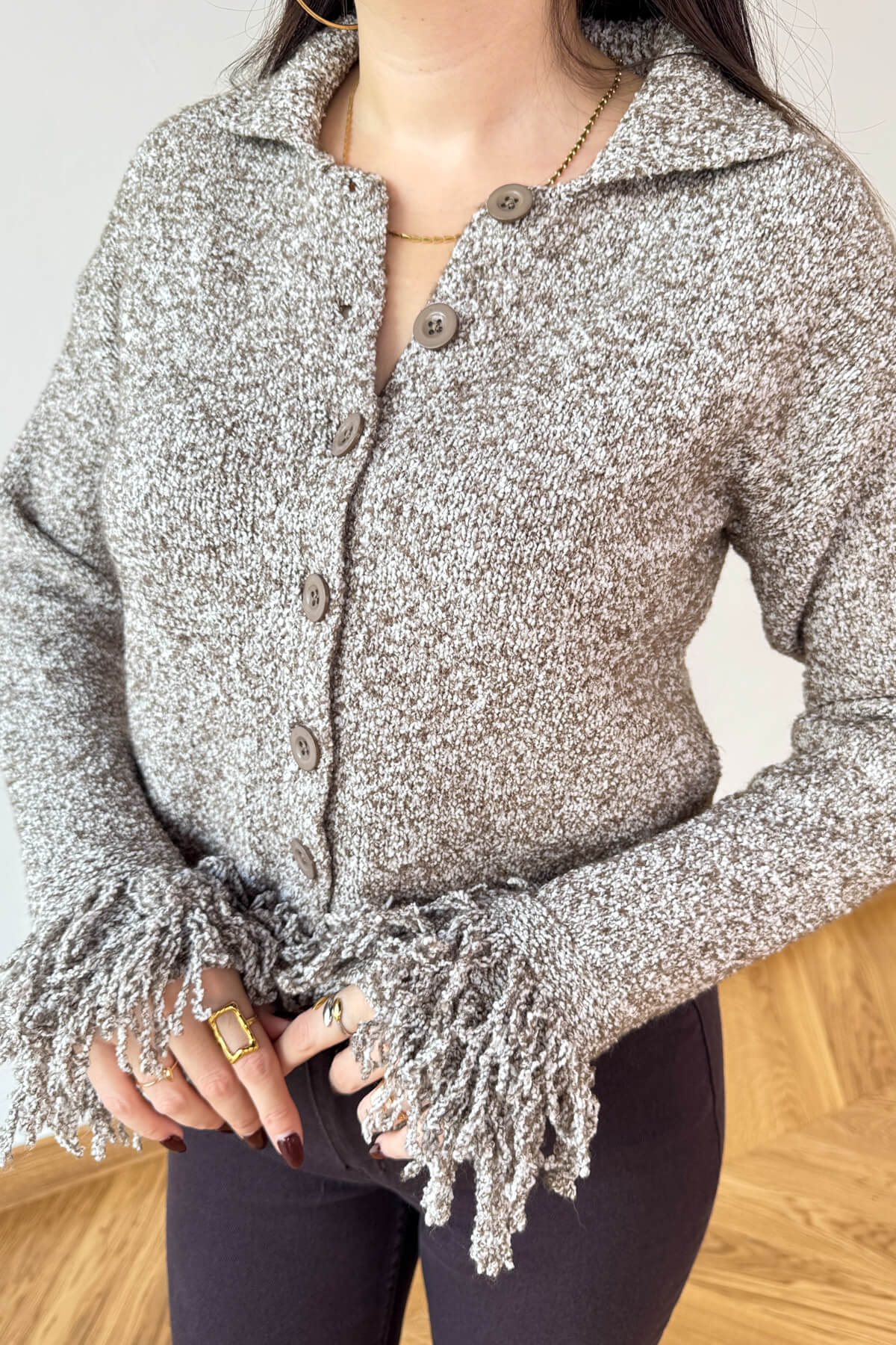• Püskül detaylı kol uçları, modern ve dikkat çekici bir görünüm oluşturur.