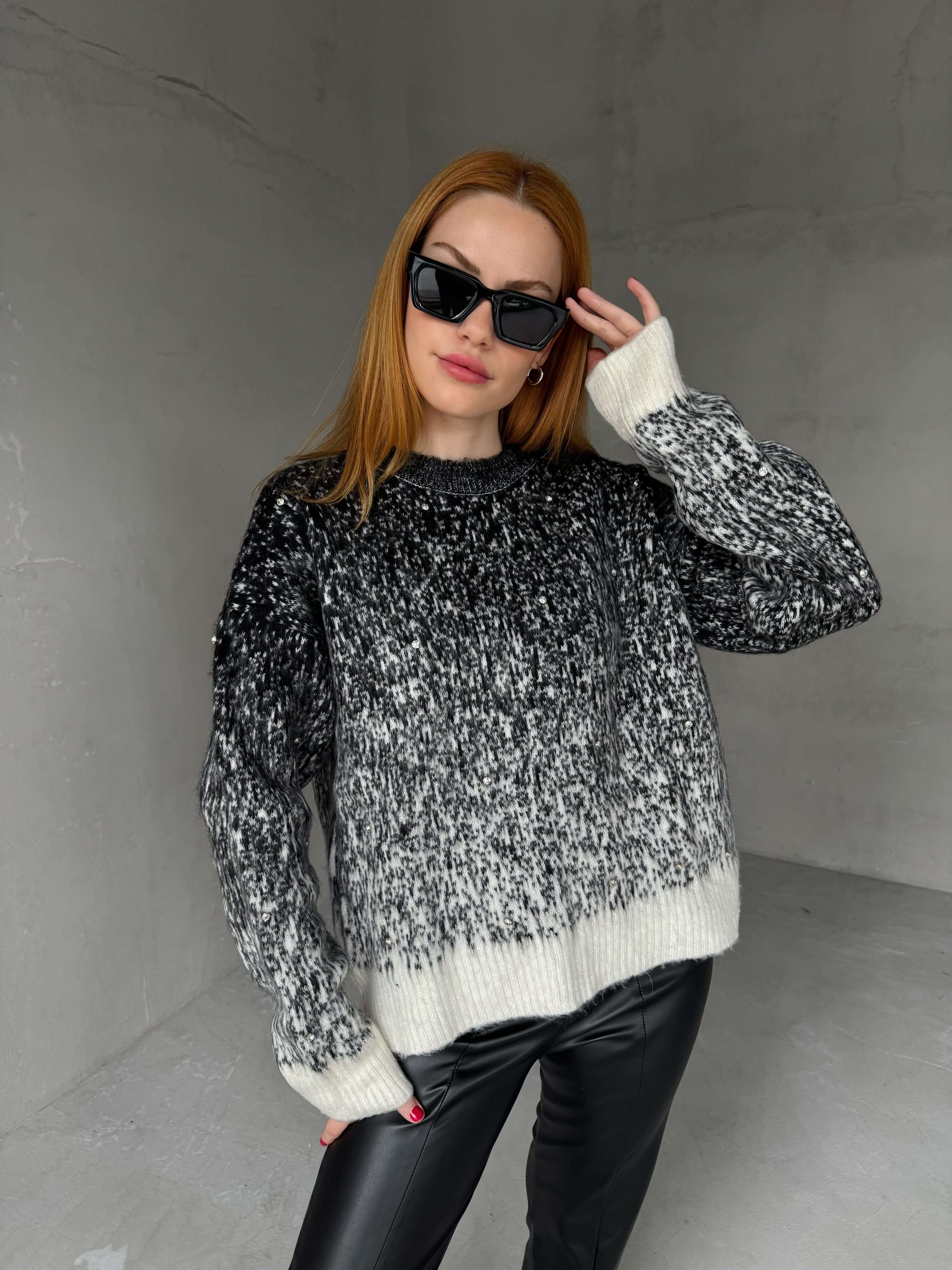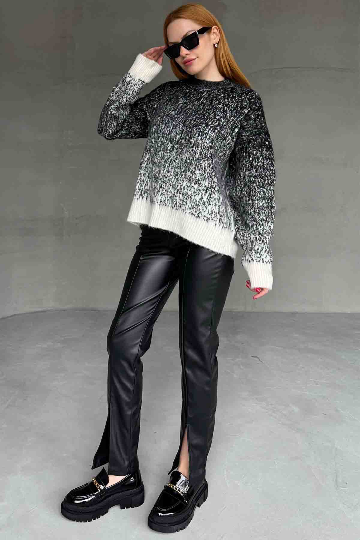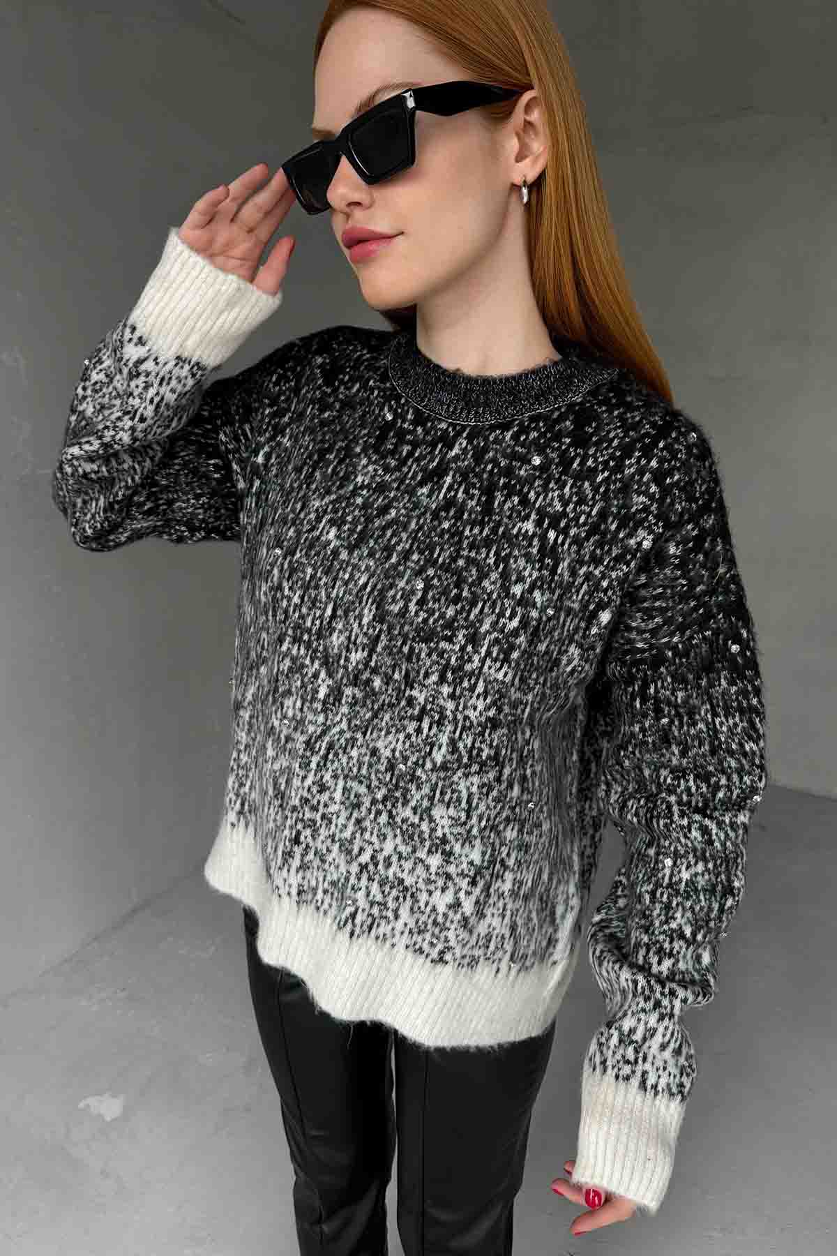 TRK-4234 Siyah Beyaz Bisiklet Yaka Uzun Kol Taş Detaylı Triko Bluz - 1TRK-4234 Siyah Beyaz Bisiklet Yaka Uzun Kol Taş Detaylı Triko Bluz - 2TRK-4234 Siyah Beyaz Bisiklet Yaka Uzun Kol Taş Detaylı Triko Bluz - 3