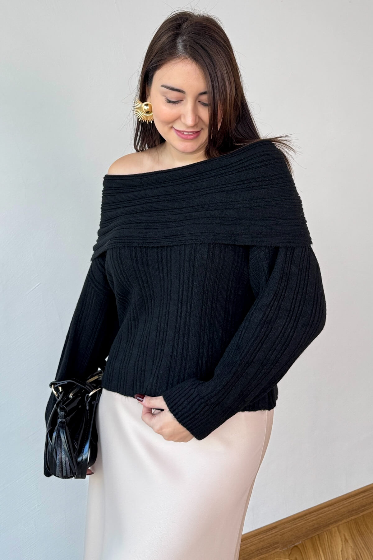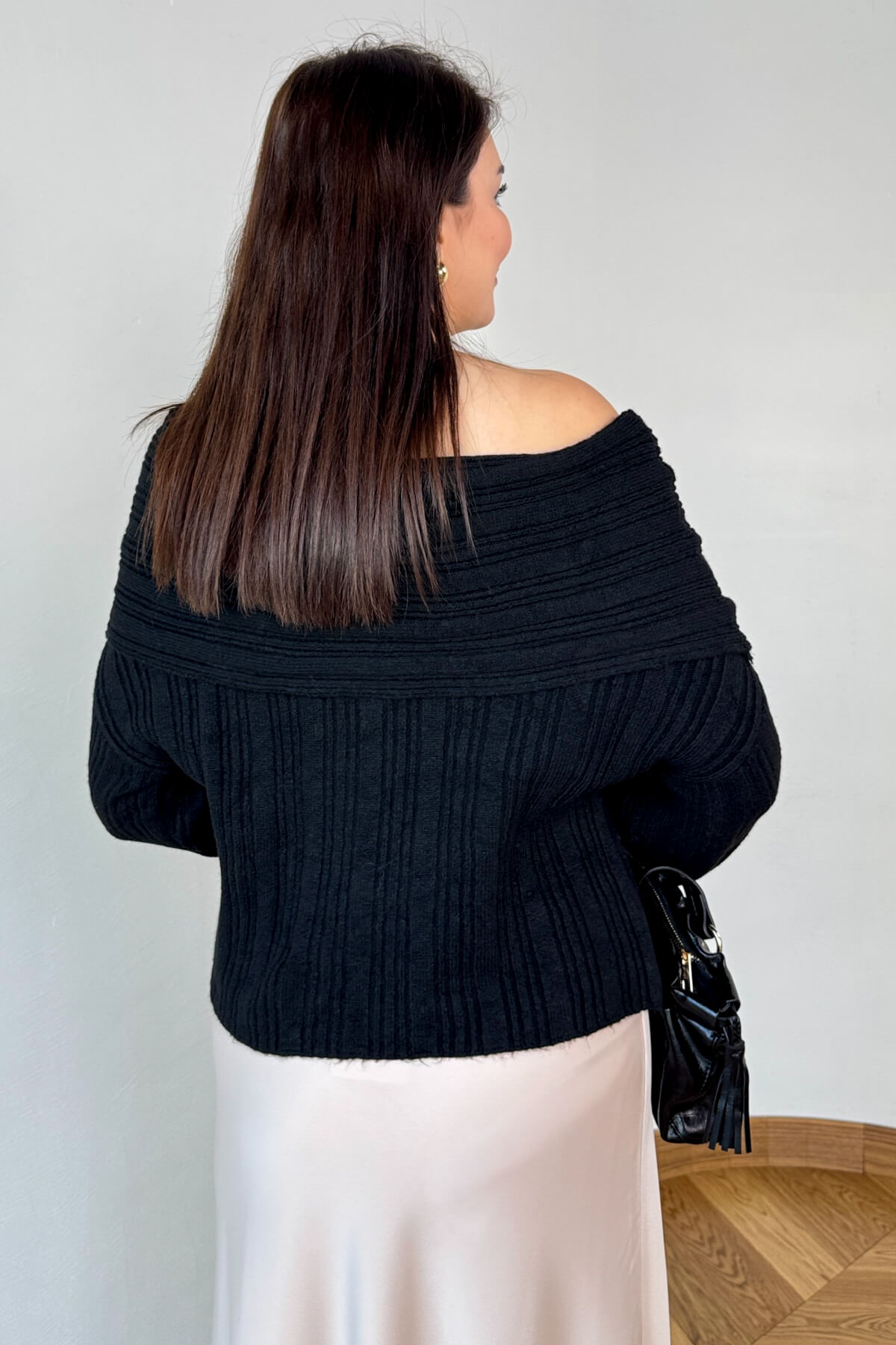 Fitil örgü detayı vücut formunu dengeleyerek modern bir görünüm kazandırır.