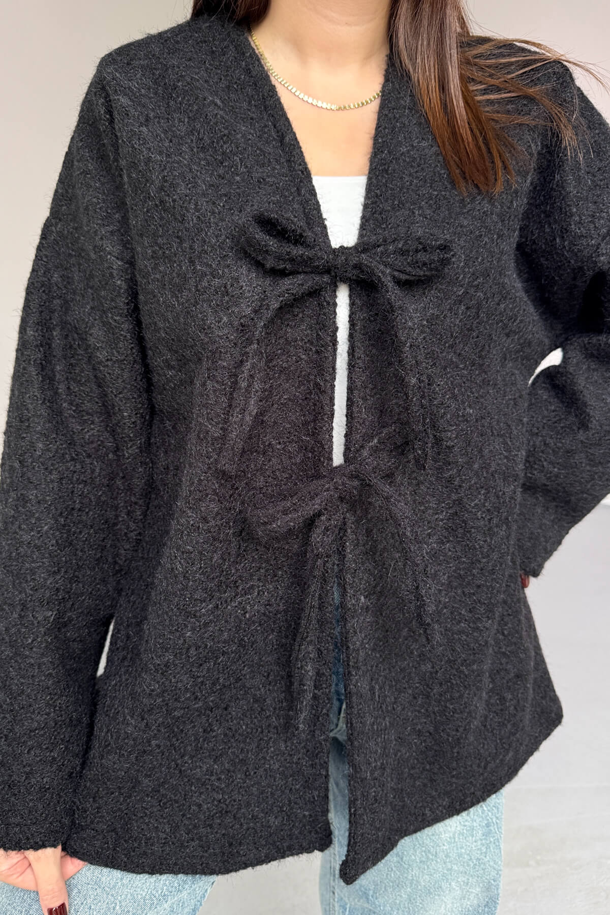 Bağlama detaylı ön kapama, salaş ve modern bir duruş kazandırır.