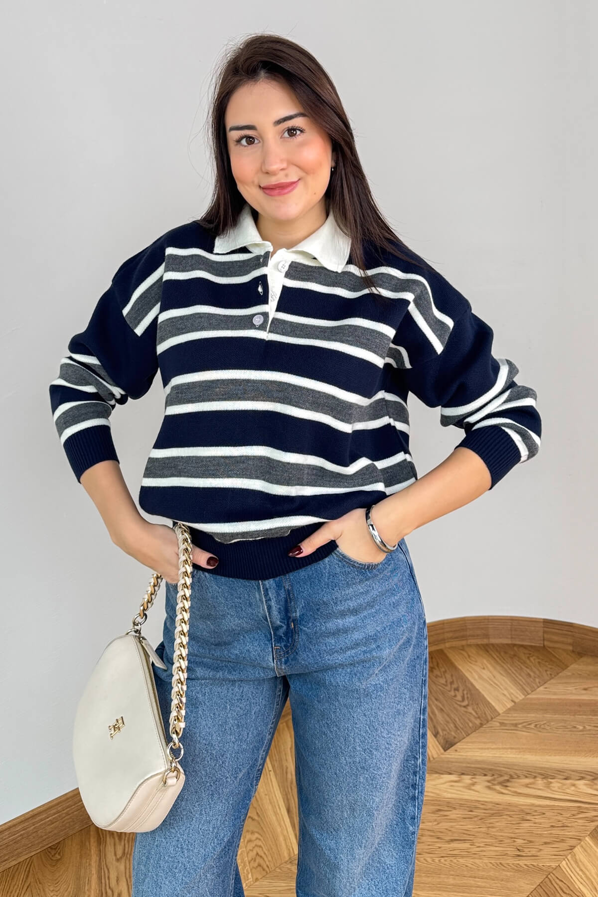 Renkli yatay çizgi deseni ile enerjik ve dinamik stil