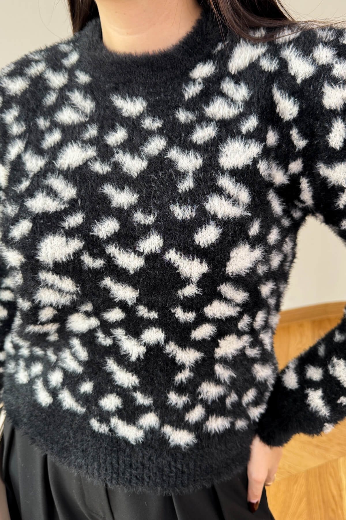Sıcak tutan sakallı triko dokusu ve doğal desen geçişleriyle kış kombinlerine modern bir dokunuş katıyor!
