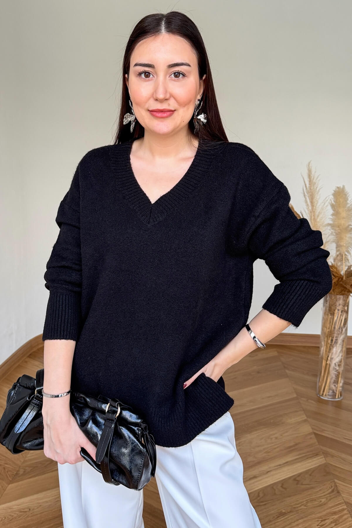 Soğuk havaların vazgeçilmezi olacak bu triko kazak, "yumoş" dokusuyla teninizde ipeksi ve sıcak bir his bırakır. Modern V yaka kesimi ve salaş oversize formu, hem rahatlığı hem de şıklığı bir arada sunarak gün boyu konfor sağlar. 70 cm boyu ve 60 cm eni ile ideal bir döküm sunan tasarım, yanlarda bulunan yırtmaç detaylarıyla hareket özgürlüğünüzü artırırken, stilinize dinamik bir hava katar. Gardırobunuzun en kurtarıcı ve modern parçalarından biri olmaya aday.