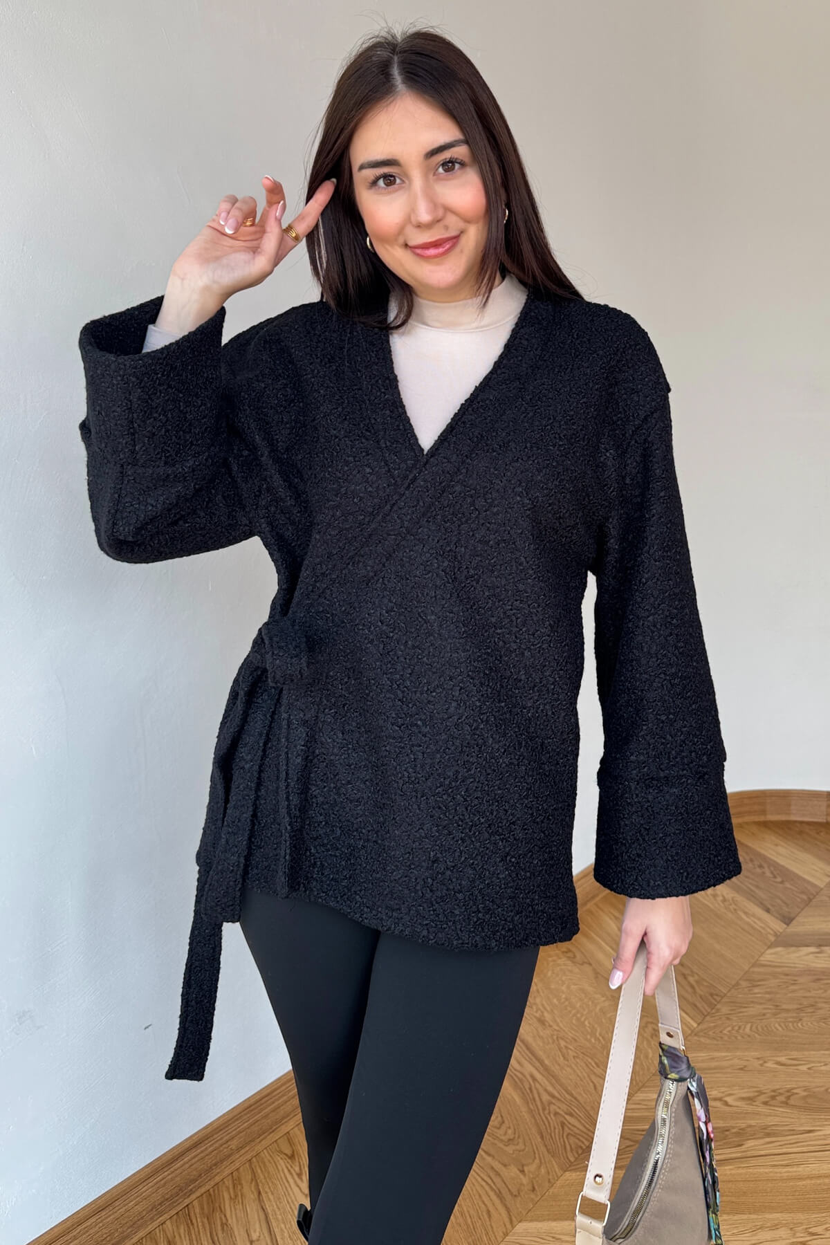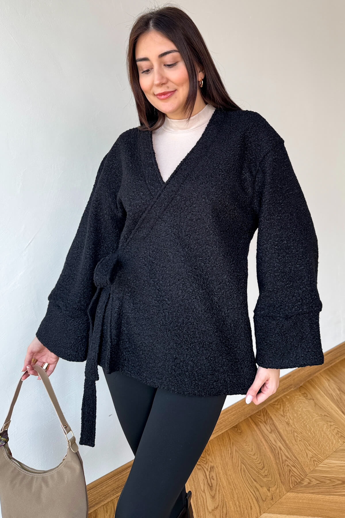 Bağlamalı ön tasarım, modern ve feminen bir görünüm sunar