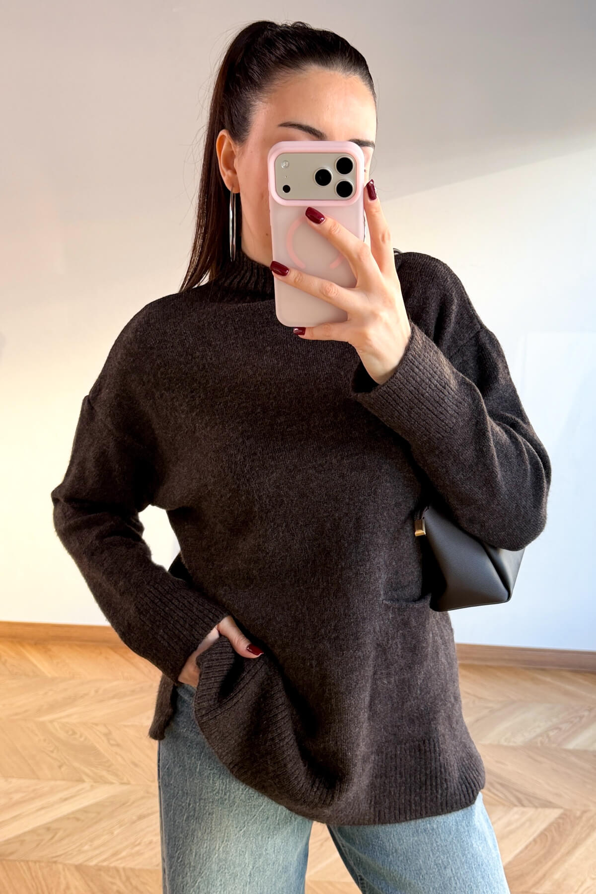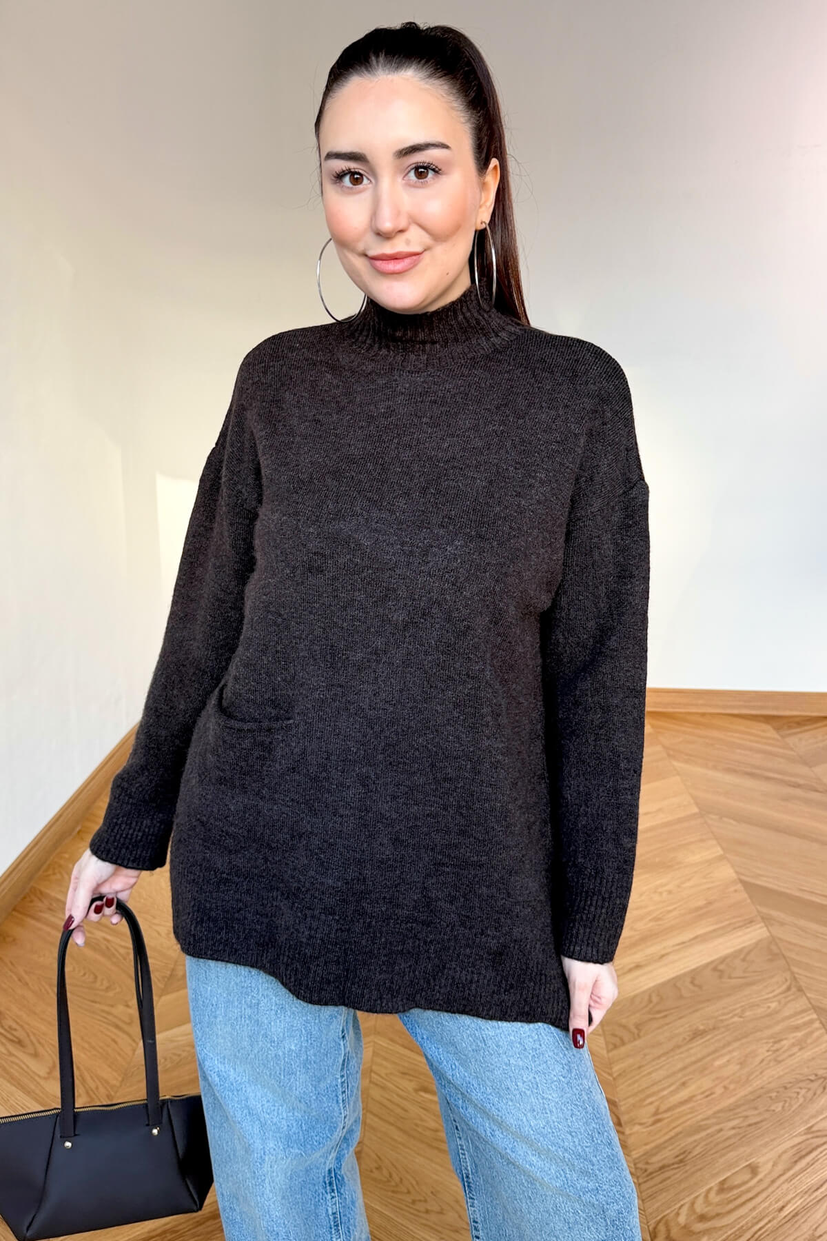 Kombin Önerisi: Siyah deri taytlar veya yüksek bel mom jeanlerle kombinleyip, postallarla tamamlayarak hem sıcak hem de trend bir kış stili oluşturabilirsiniz.