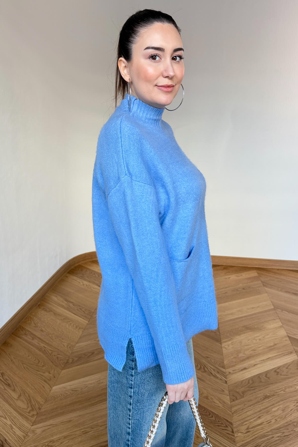 Tasarım Detayı: Ön kısımda modern mini cep ve zarif yarım balıkçı yaka