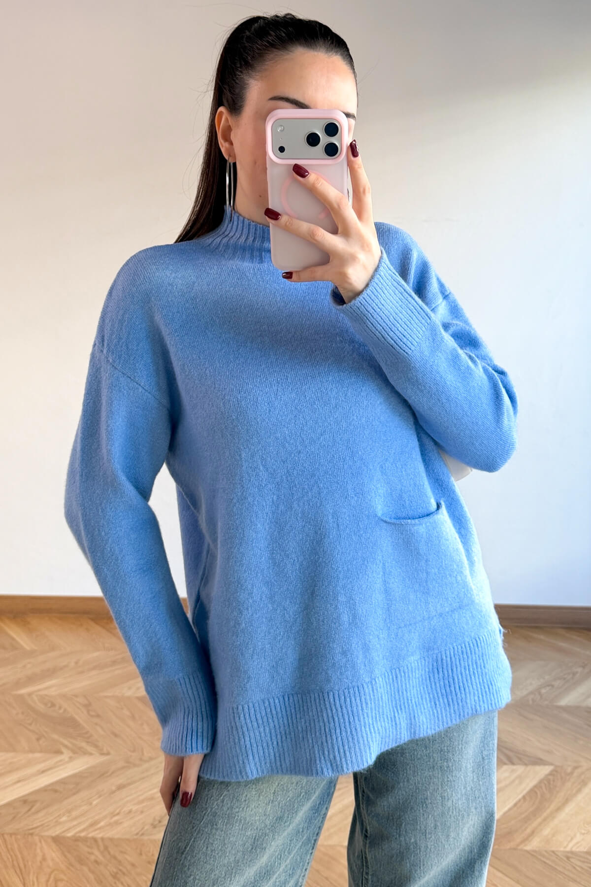 Kış gardırobunuza enerji ve sıcaklık katacak bu tasarım kazak, %100 pamuklu doğal ipliği sayesinde cildinizin nefes almasını sağlarken gün boyu süren üstün bir konfor sunar. Yumuşak dokusu teninizde lüks bir his bırakırken, modern yarım balıkçı yaka kesimi soğuk havalarda sizi şıklıkla sarmalar. Tasarımın ön yüzündeki minimal cep detayı, klasik triko görünümüne çağdaş ve sportif bir dokunuş ekliyor. 68 cm ideal boyu ve 60 cm genişliğindeki rahat kalıbı ile hem şık hem de eforsuz bir stil arayanlar için vazgeçilmez bir parça.