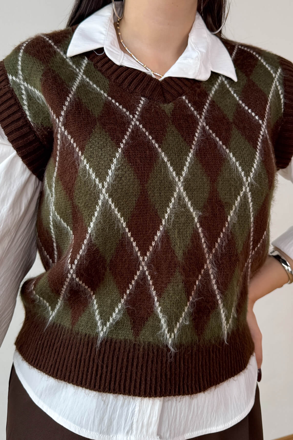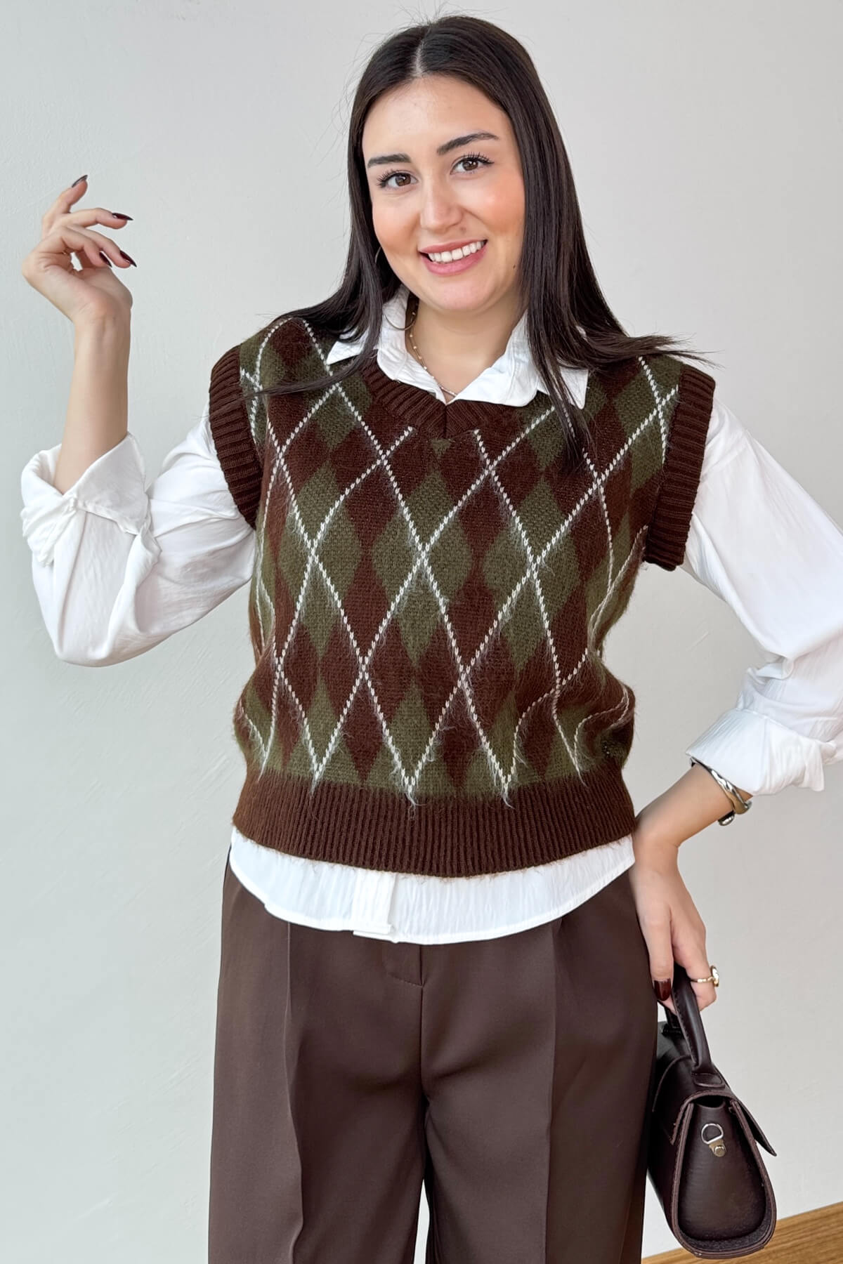V yaka kesimi, gömlek veya bluzlarla rahat kombinlenir