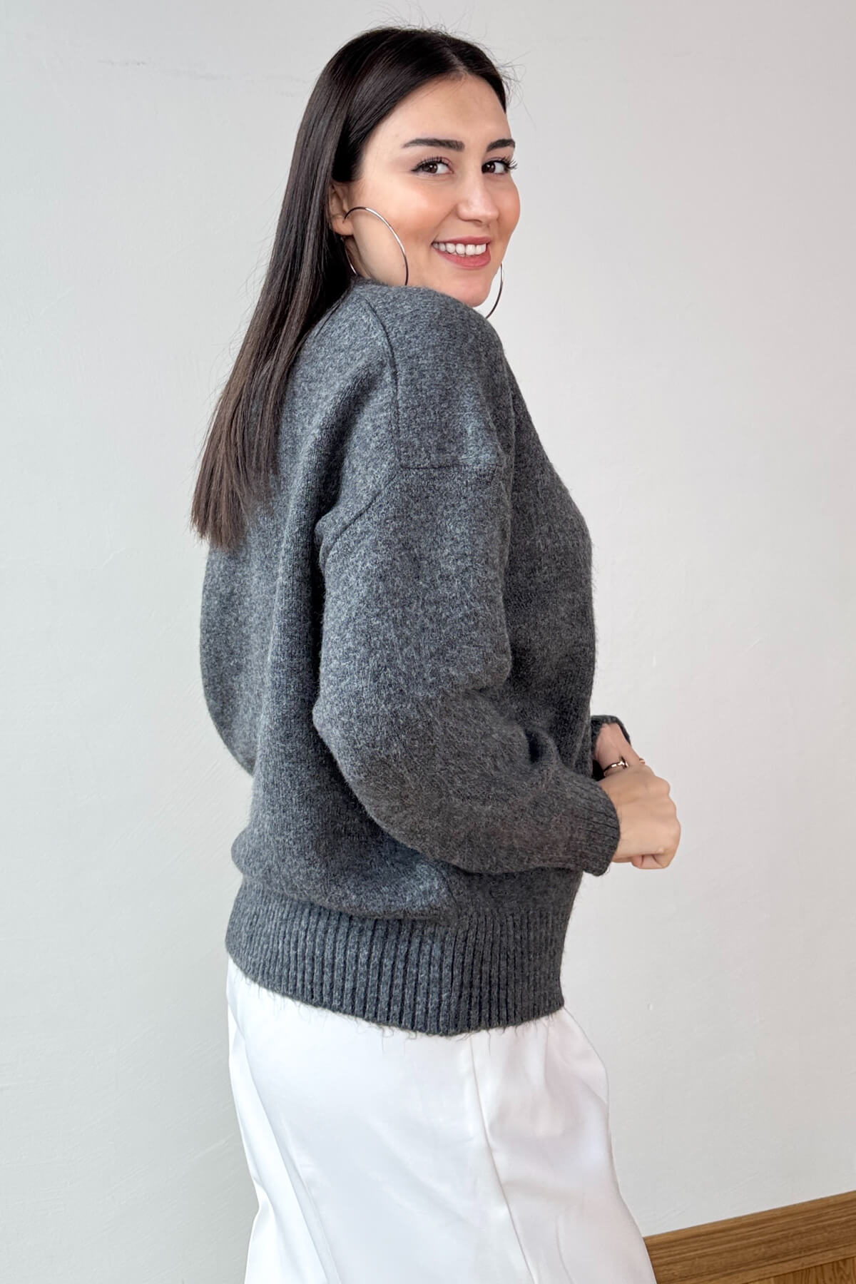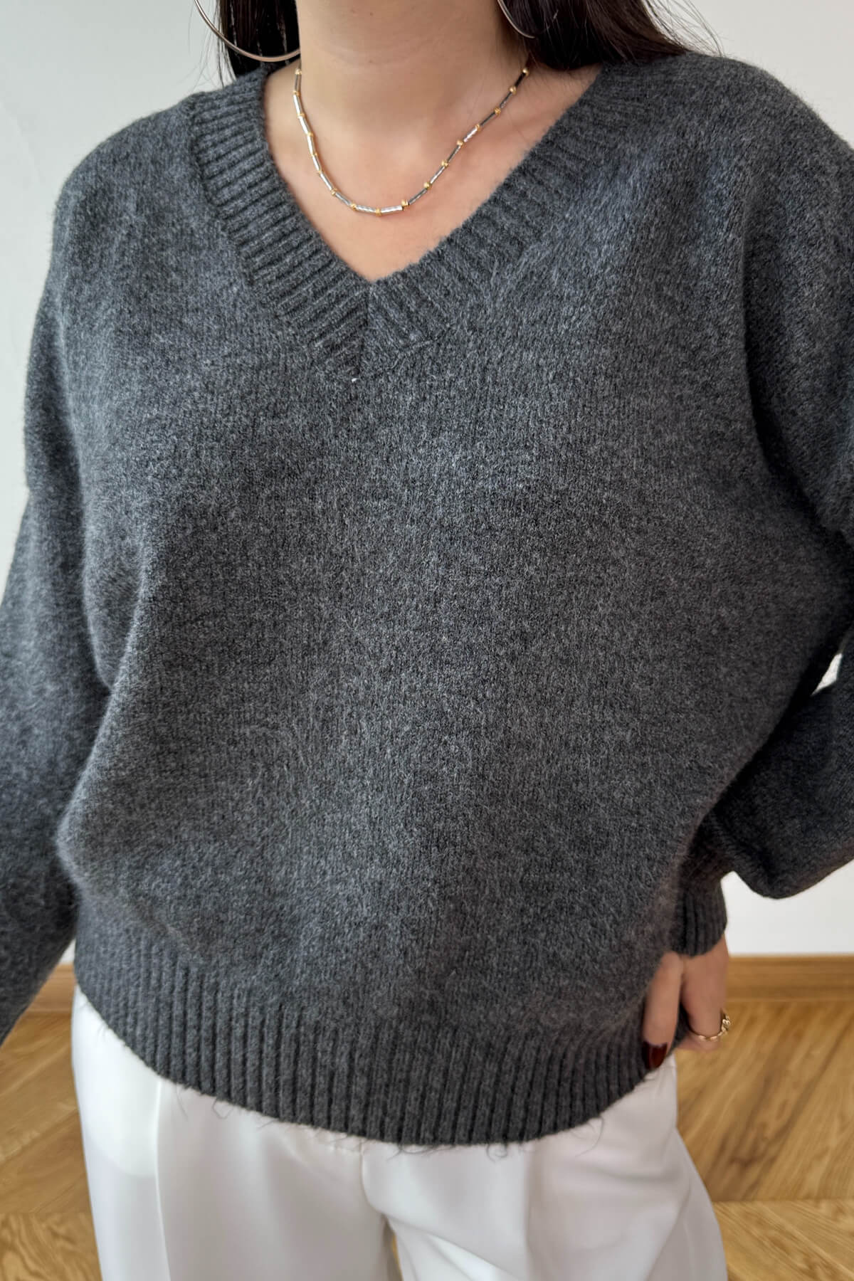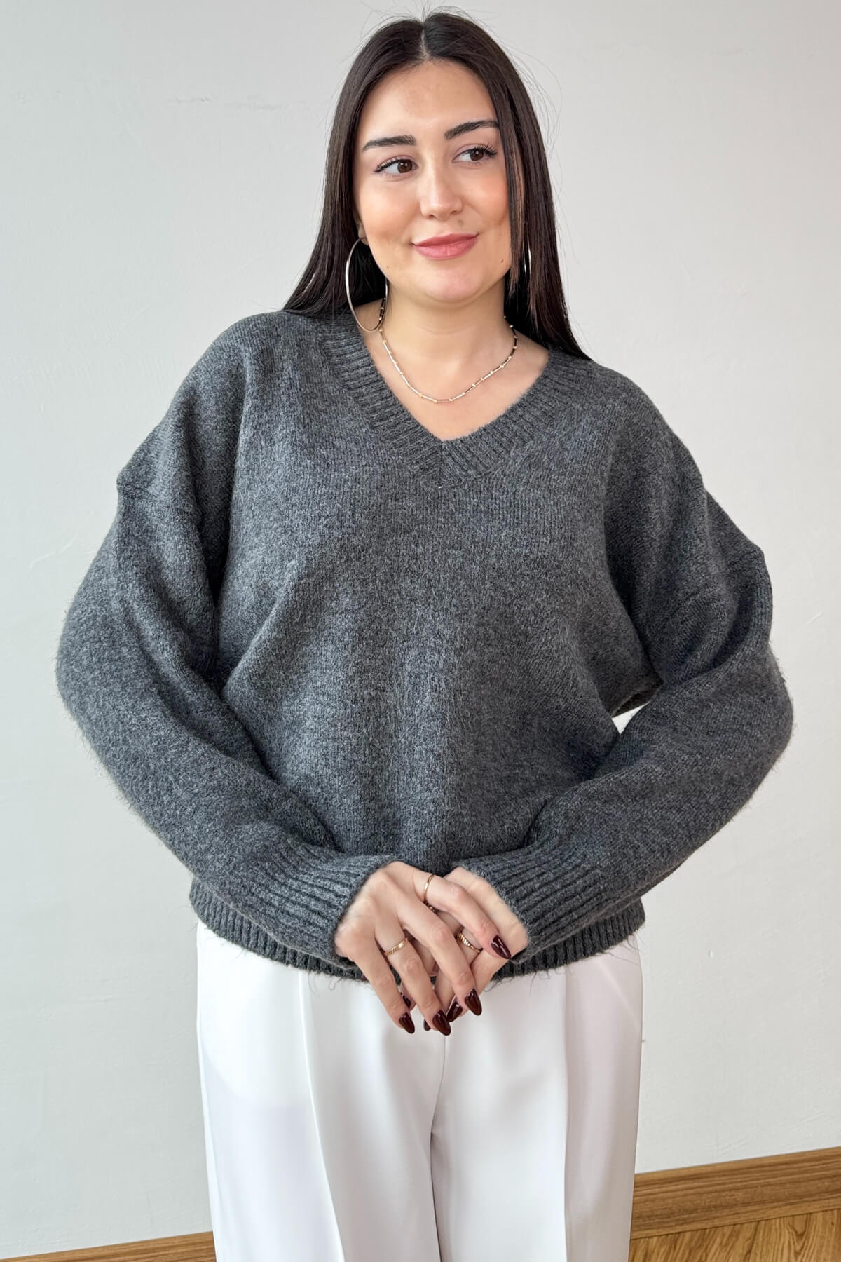 TRK-8989 Füme Oversize V Yaka Kolej Kazak