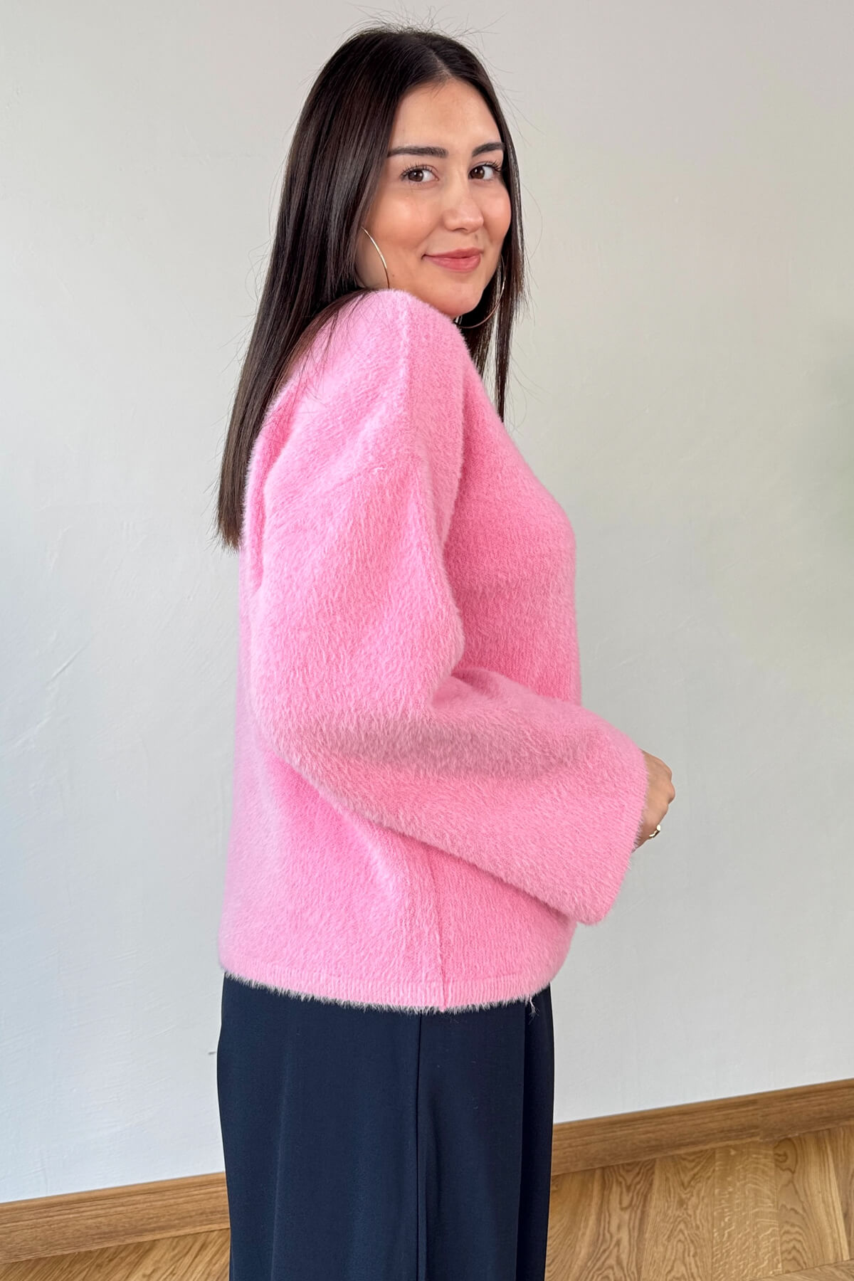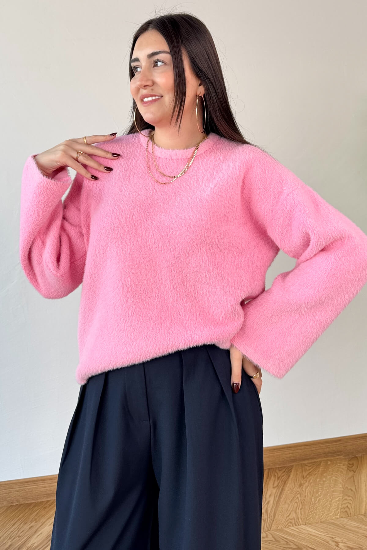 TRK-9050 Pembe Yumuşak Dokulu Oversize Kaşmir Kazak