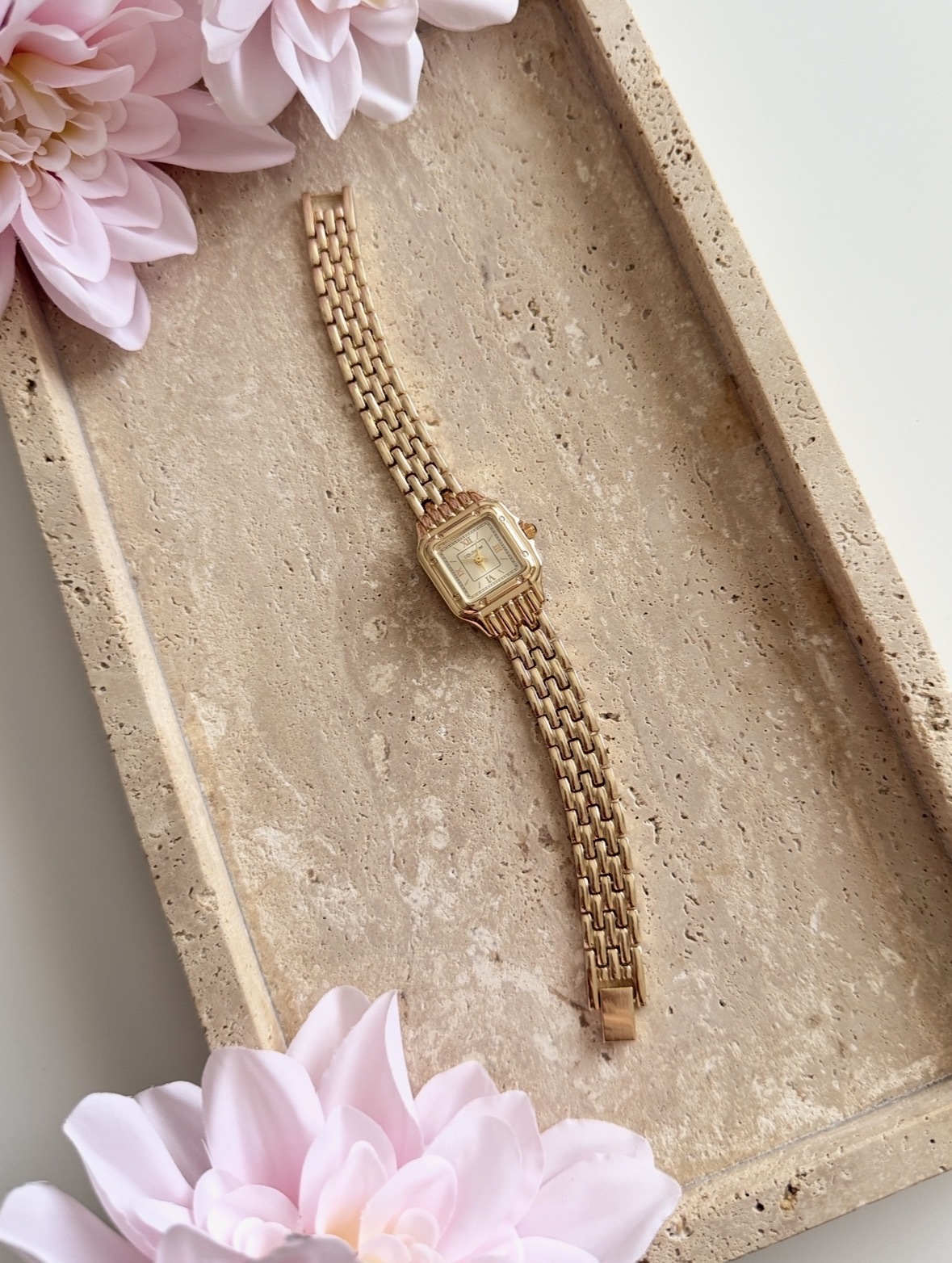Klasik çizgilerin modern bir yorumu olan bu model, kavisli kare kasası ve Roma rakamlı kadranıyla zamansız bir şıklık sunuyor. Altın rengi kordonun ağırlığı ve vintage esintili tasarımıyla, hem günlük kombinlerinize hem de iş hayatınıza zahmetsiz bir asalet katacak.