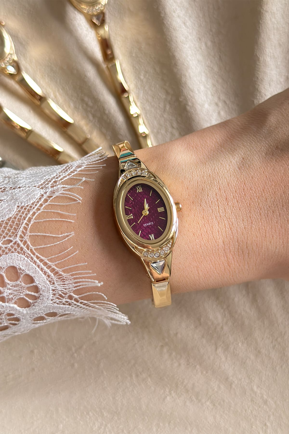 Cappmoda Velix Bordo Taşlı Çelik Kordon Kol Saati