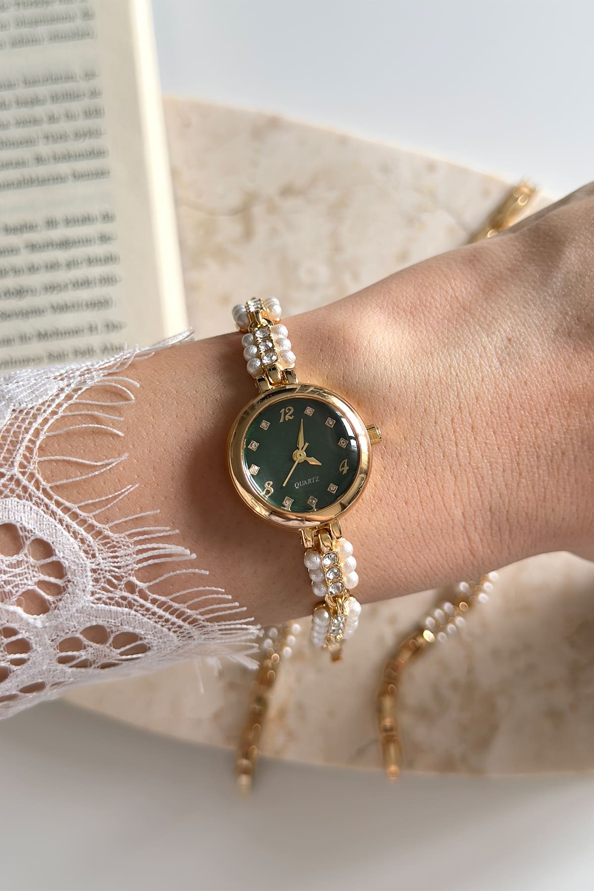 Zamanın ötesinde bir şıklık ve zarif detayların buluşması... Bu özel koleksiyon, sadece bir saat değil; bileğinizde bir mücevher gibi parlayacak sofistike bir aksesuar sunuyor. Klasik inci dokusunu modern altın tonlarıyla birleştiren bu modeller, stilinize vintage bir dokunuş katmak için tasarlandı.