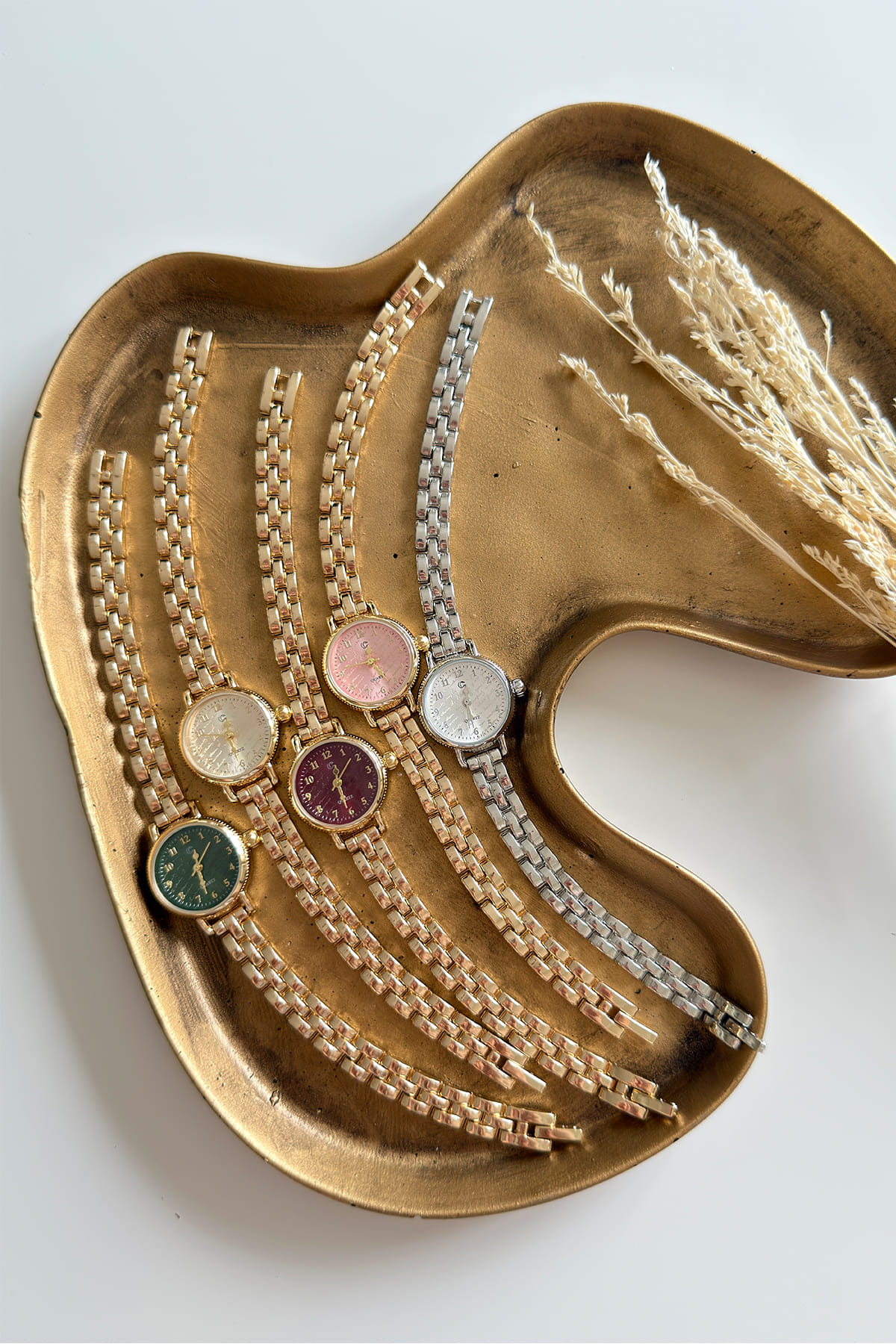 Geçmişin romantik dokusunu modern bir zarafetle bileğinize taşıyın. İncecik zincir kordon yapısı ve klasik küçük kasa tasarımıyla bu seri, "less is more" (az çoktur) felsefesini benimseyen kadınlar için özel olarak hazırlandı. Hem bir saat hem de en sevdiğiniz altın bilekliğinizle yarışacak kadar zarif.
