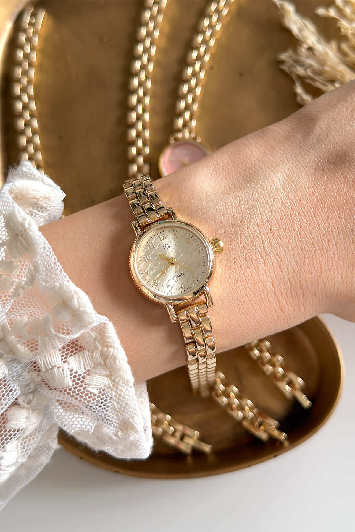Geçmişin romantik dokusunu modern bir zarafetle bileğinize taşıyın. İncecik zincir kordon yapısı ve klasik küçük kasa tasarımıyla bu seri, "less is more" (az çoktur) felsefesini benimseyen kadınlar için özel olarak hazırlandı. Hem bir saat hem de en sevdiğiniz altın bilekliğinizle yarışacak kadar zarif.