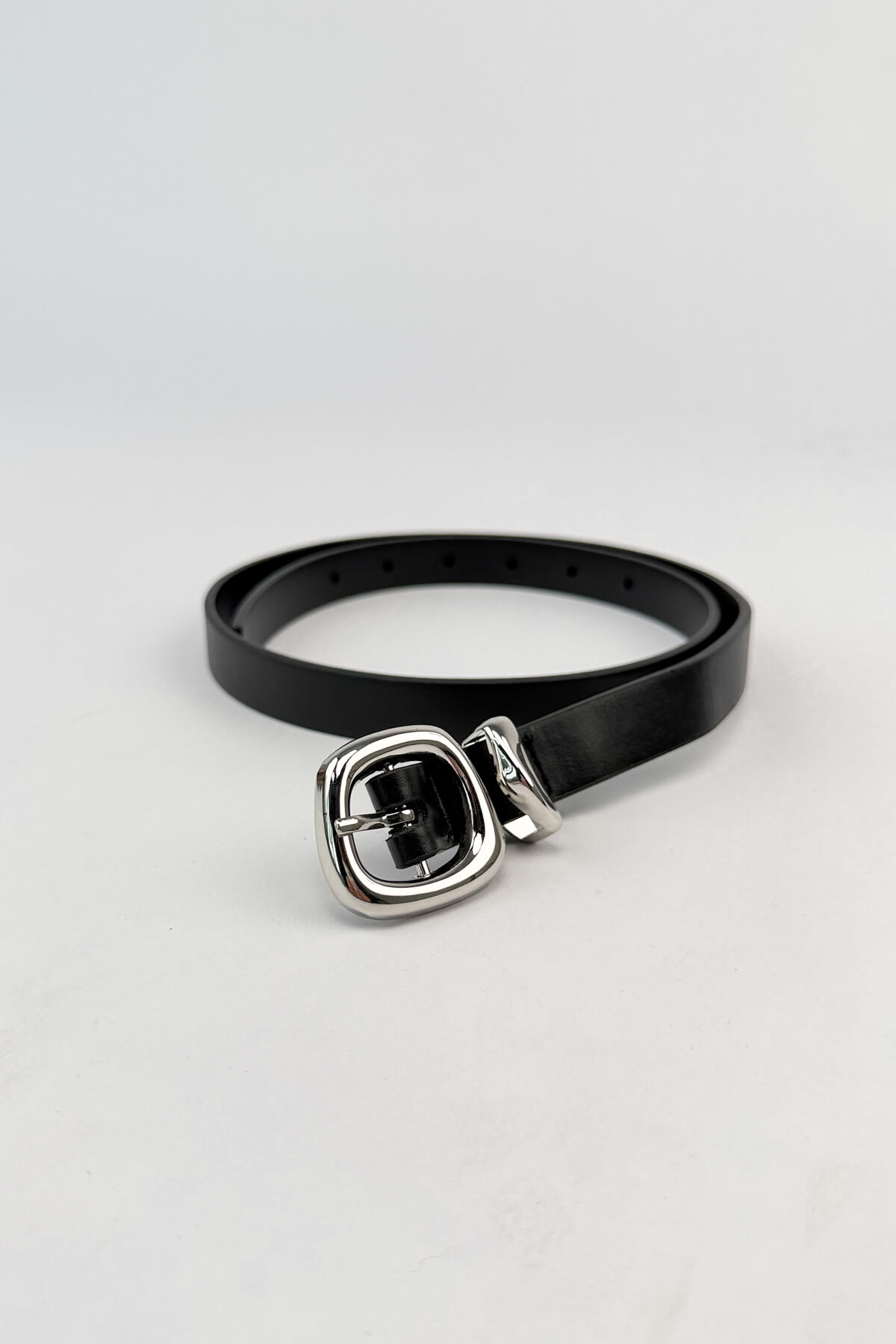 Modernist bir estetik anlayışıyla tasarlanan bu kemer, kavisli gümüş renkli tokasıyla en sade kombinleri bile bir anda üst seviyeye taşıyor. Acı kahve ve siyahın en asil tonlarıyla sunulan, mat bitişli pürüzsüz yüzeyi, nikel köprü detayıyla birleşerek rafine bir görünüm sunuyor. 2 cm’lik zarif eni, pantolonlarda veya ceket üzerinde bel vurgusu yapmak için kusursuz bir ölçü sunarken, dayanıklı yapısıyla gardırobunuzun joker aksesuarı olacak.