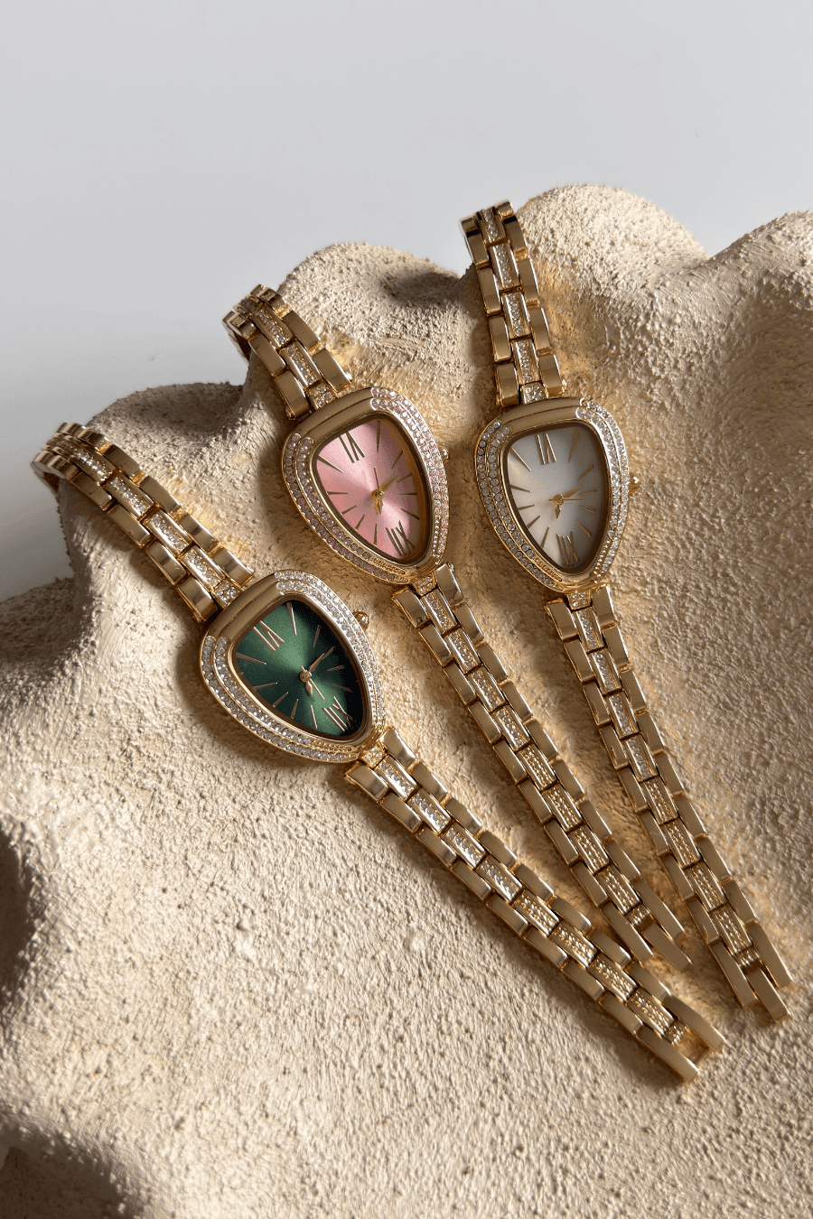 Zarafetin en vahşi ve büyüleyici formuyla tanışın. İkonik yılan başı figüründen ilham alan bu özel tasarım, damla formundaki kasası ve ışıltılı detaylarıyla bileğinizde bir saatten çok değerli bir mücevher etkisi yaratıyor. Her detayıyla lüksü ve asaleti hissettiren bu koleksiyon, cesur ve sofistike kadınlar için tasarlandı.