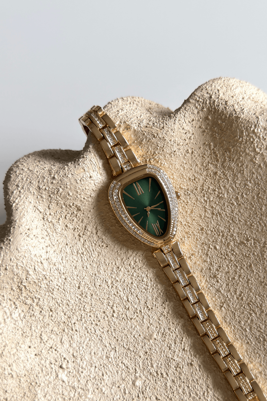 Zarafetin en vahşi ve büyüleyici formuyla tanışın. İkonik yılan başı figüründen ilham alan bu özel tasarım, damla formundaki kasası ve ışıltılı detaylarıyla bileğinizde bir saatten çok değerli bir mücevher etkisi yaratıyor. Her detayıyla lüksü ve asaleti hissettiren bu koleksiyon, cesur ve sofistike kadınlar için tasarlandı.