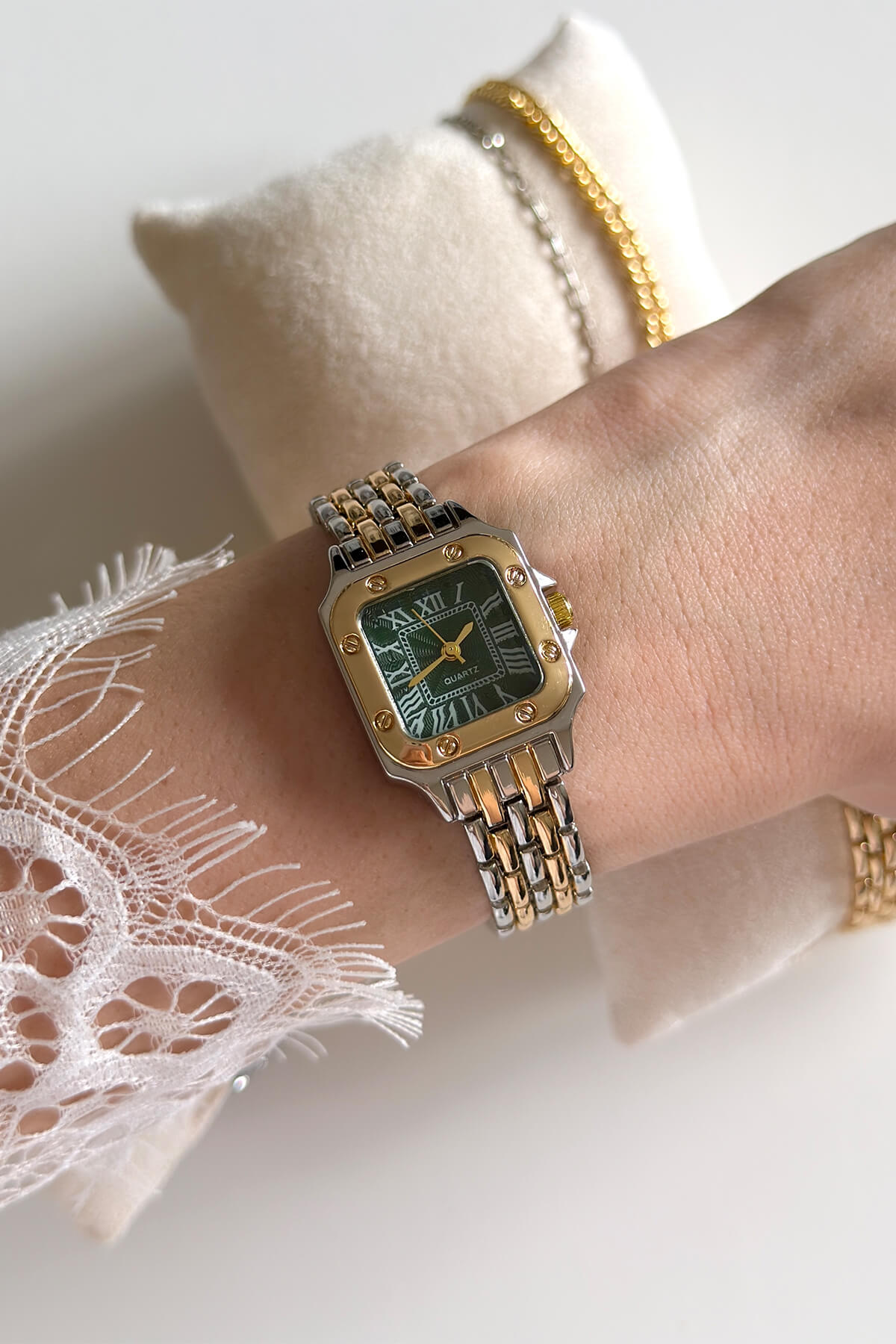 Vintage tasarımın modern işçilikle buluştuğu bu özel seri, klasik kare kasa formunu Roma rakamlı kadran detayıyla taçlandırıyor. "Quiet Luxury" akımını yansıtan bu model, hem günlük hem de gece şıklığında iddialı ve sofistike bir duruş sergiler.